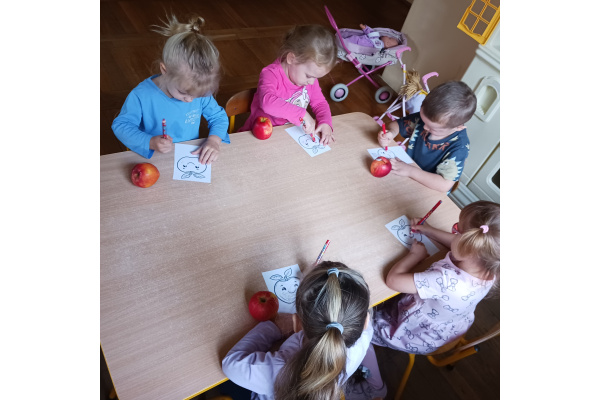 Ostatnie jesienne dni dzieci z grupy Motylki spędziły na zabawach z warzywami i owocami. Przedszkolaki smakowały przyniesione przez siebie produkty, nazywały, poznawały, przeliczały. Dzieci wykonały również owocowo-warzywną pracę plastyczną.