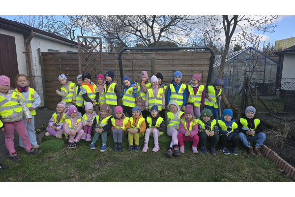 Dzieci z grup Zajączków i Żabek wybrały się na wycieczkę do ogrodów działkowych, aby poszukiwać pierwszych oznak wiosny.