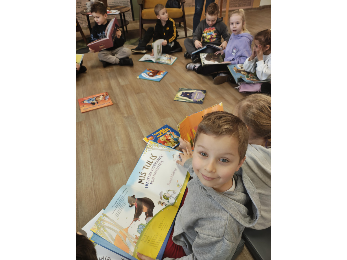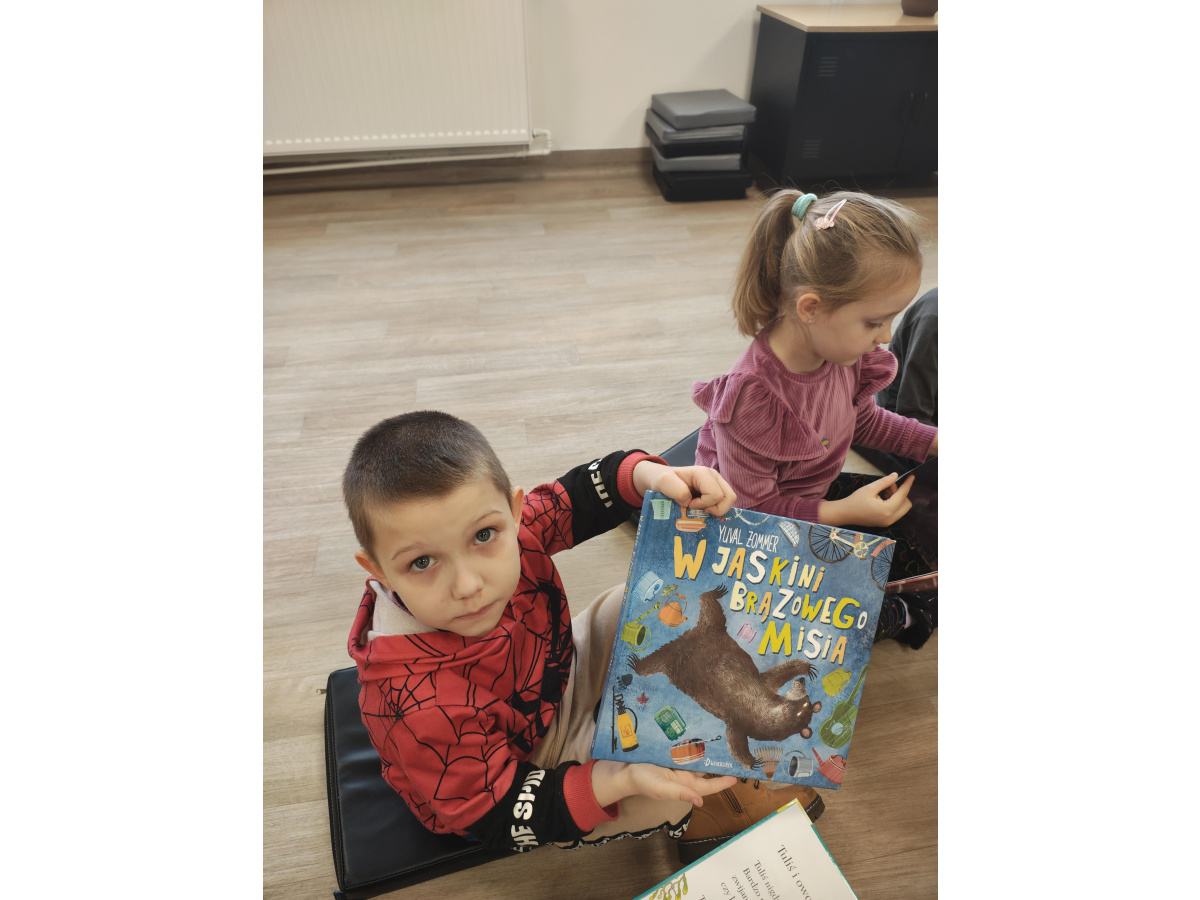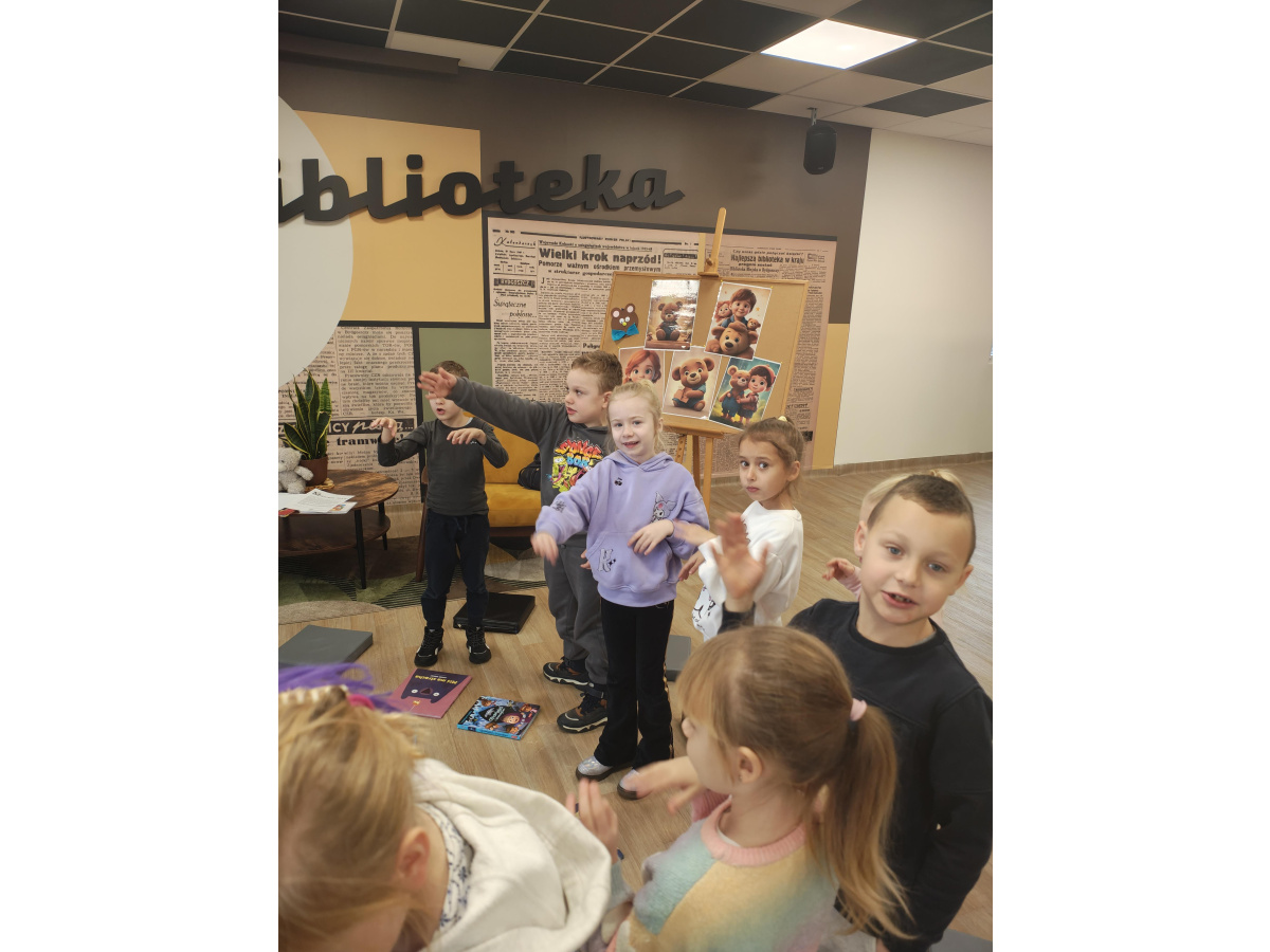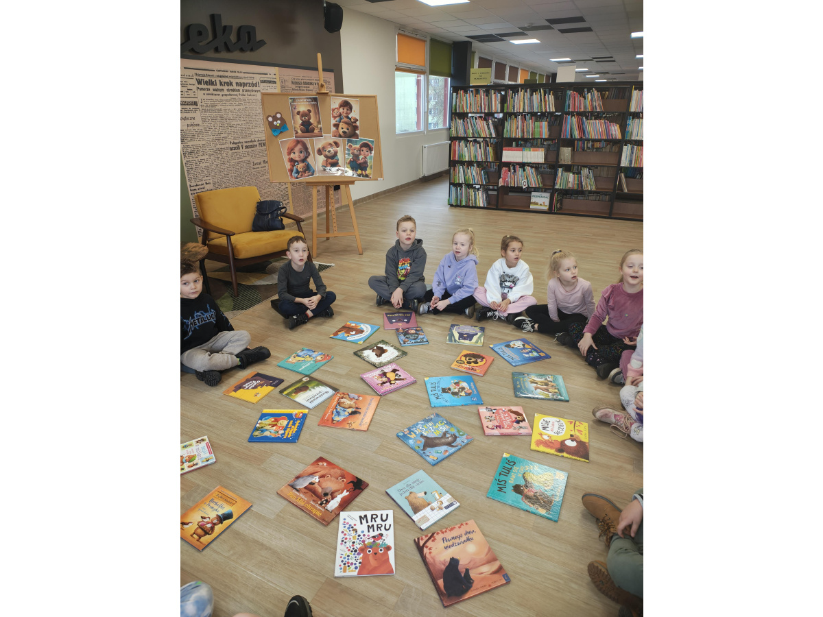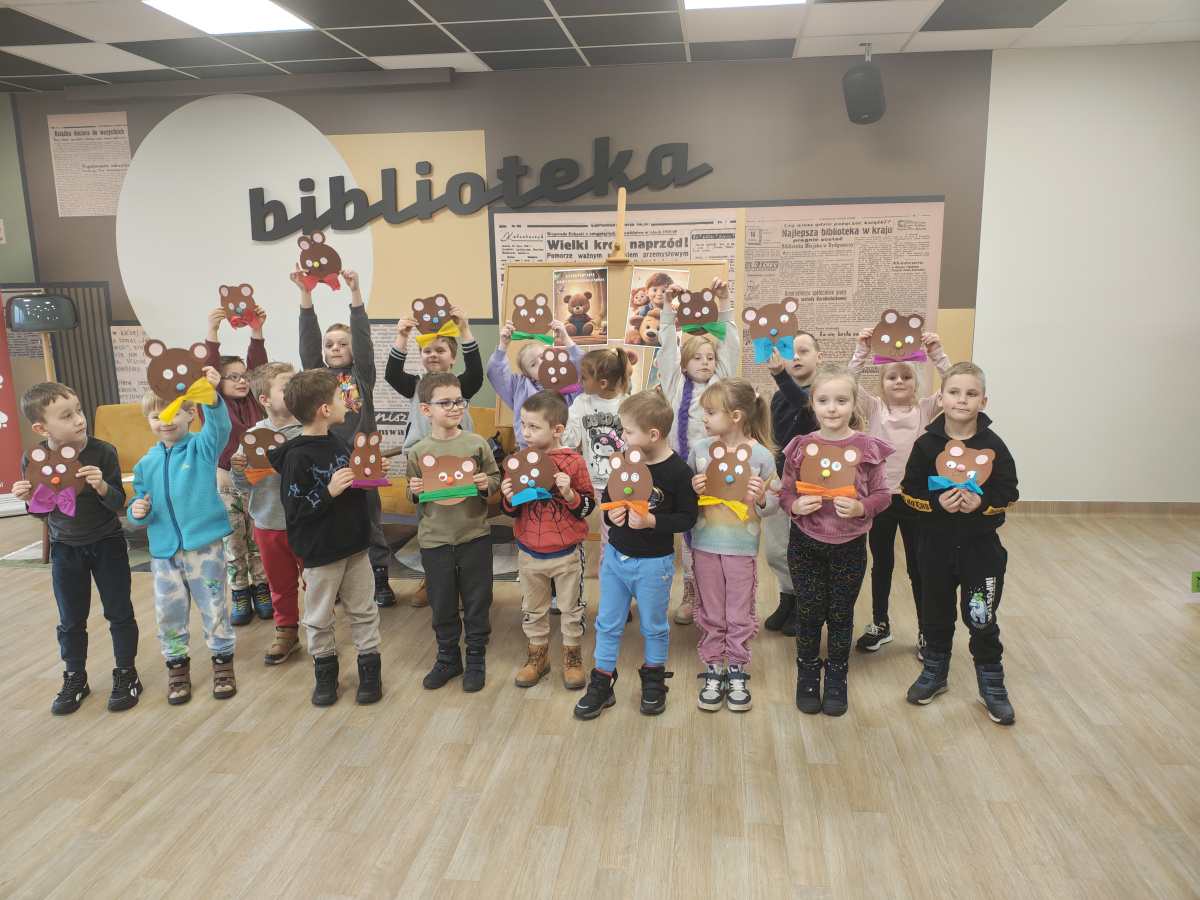 Dzieci z grupy,,Biedronki" uczestniczyły w zajęciach bibliotecznych, których tematem był Dzień Pluszowego Misia. Dzieci poznały historię pluszowego misia, rozpoznawały znane misiowe postaci bajkowe, filmowe i literackie. Wysłuchały bajki o Misiu Tulisiu. Tworzyły postać misia w zabawie ,, Wyturlaj misia". Wykonały pracę plastyczną,, Mój przyjaciel miś". Obejrzały książki o znanych misiach.