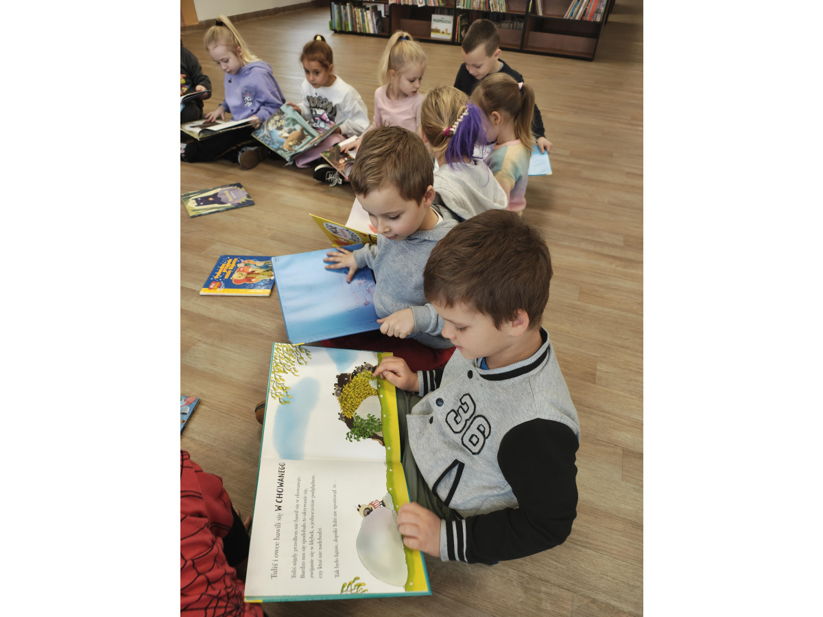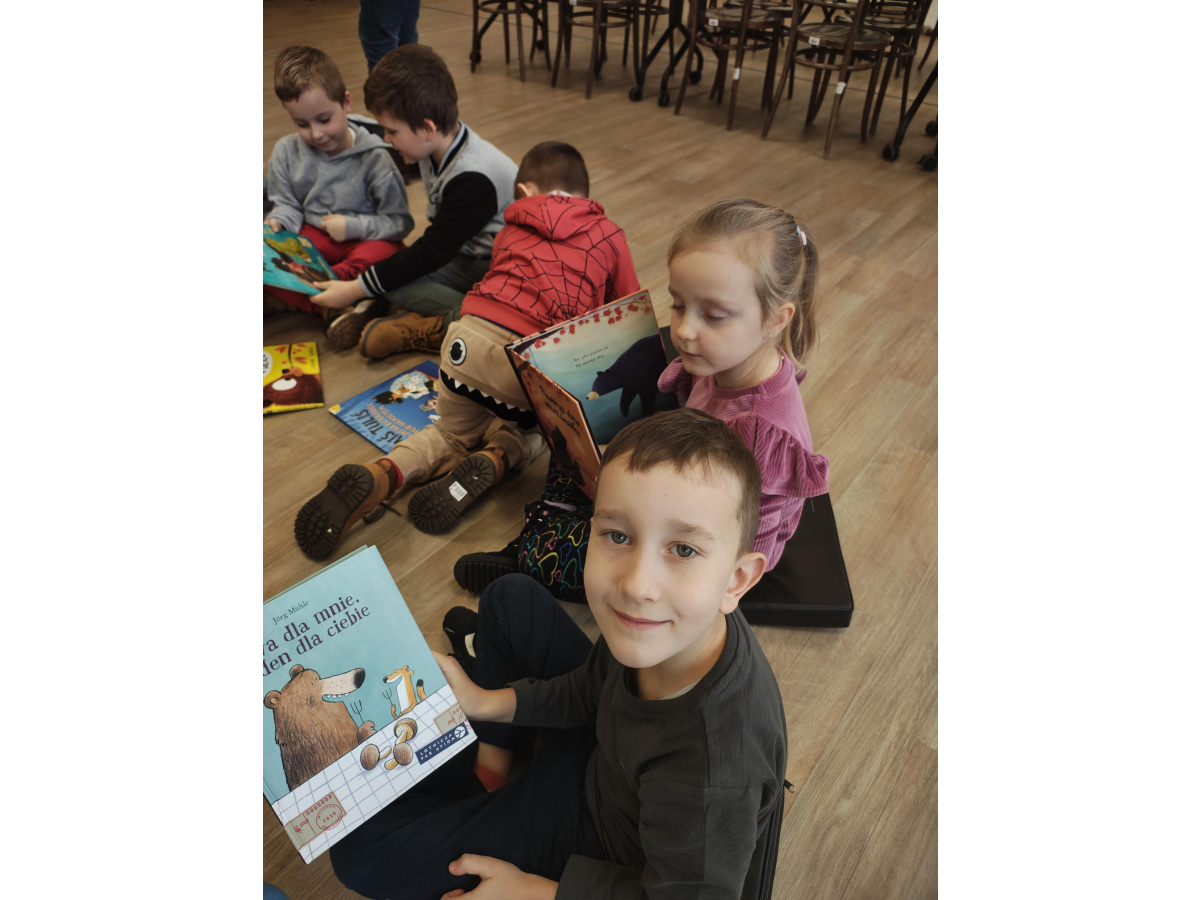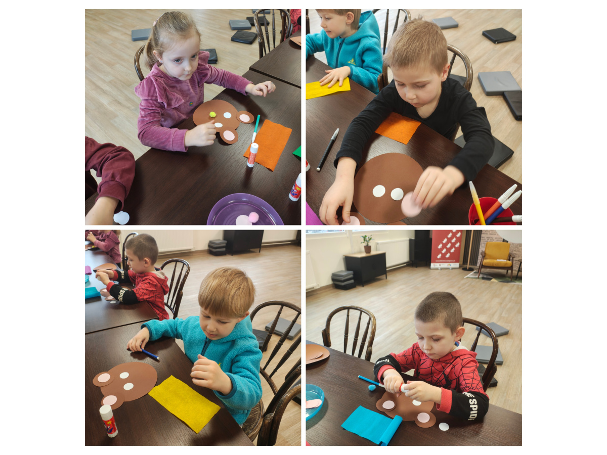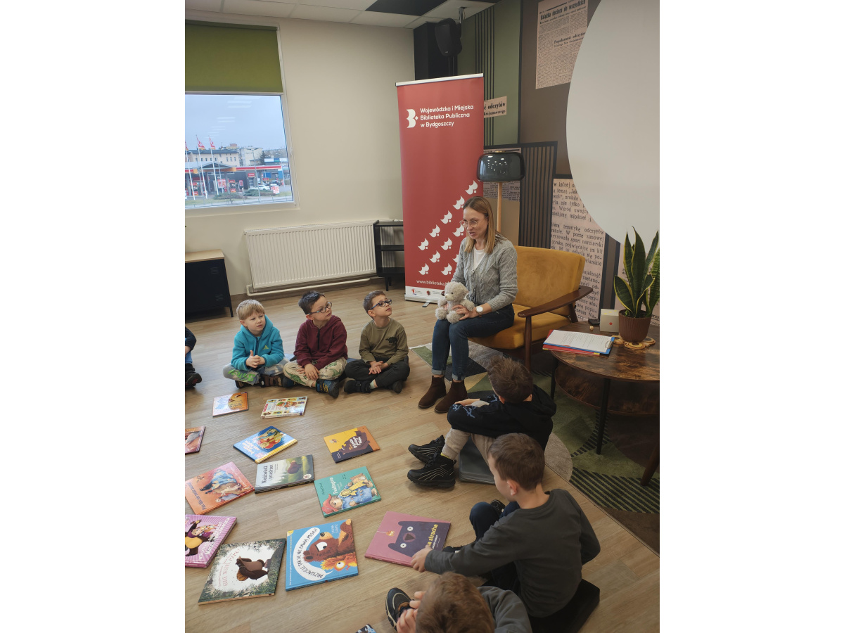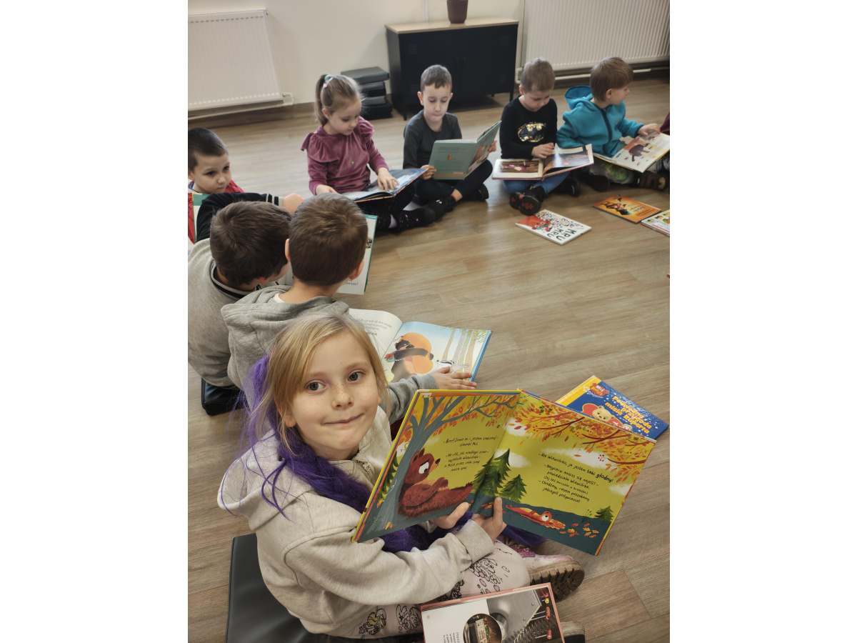 Dzieci z grupy,,Biedronki" uczestniczyły w zajęciach bibliotecznych, których tematem był Dzień Pluszowego Misia. Dzieci poznały historię pluszowego misia, rozpoznawały znane misiowe postaci bajkowe, filmowe i literackie. Wysłuchały bajki o Misiu Tulisiu. Tworzyły postać misia w zabawie ,, Wyturlaj misia". Wykonały pracę plastyczną,, Mój przyjaciel miś". Obejrzały książki o znanych misiach.