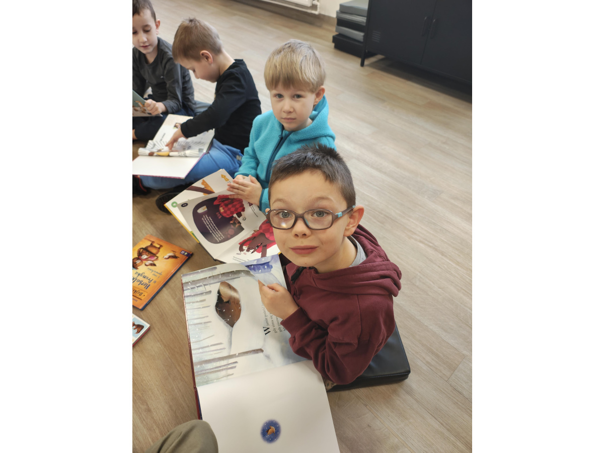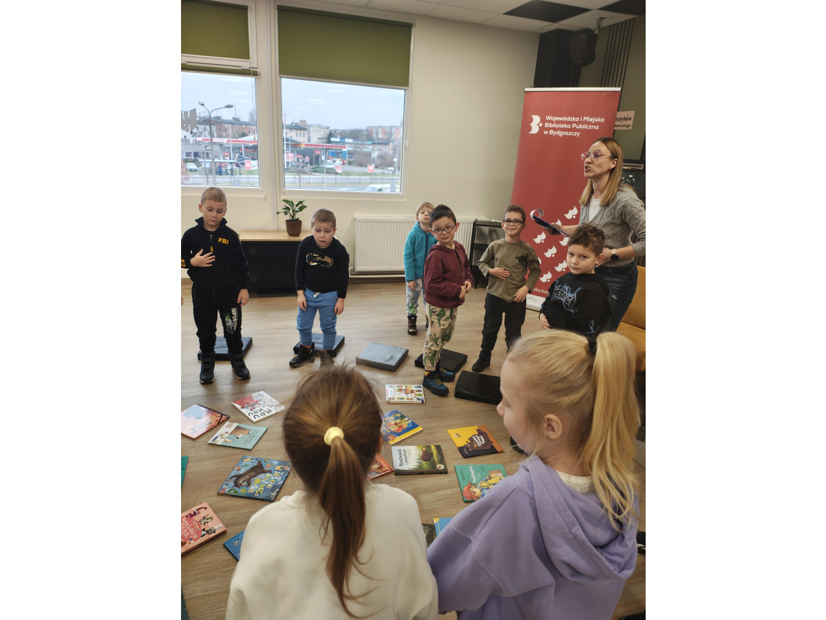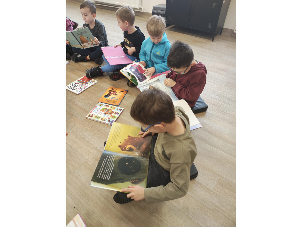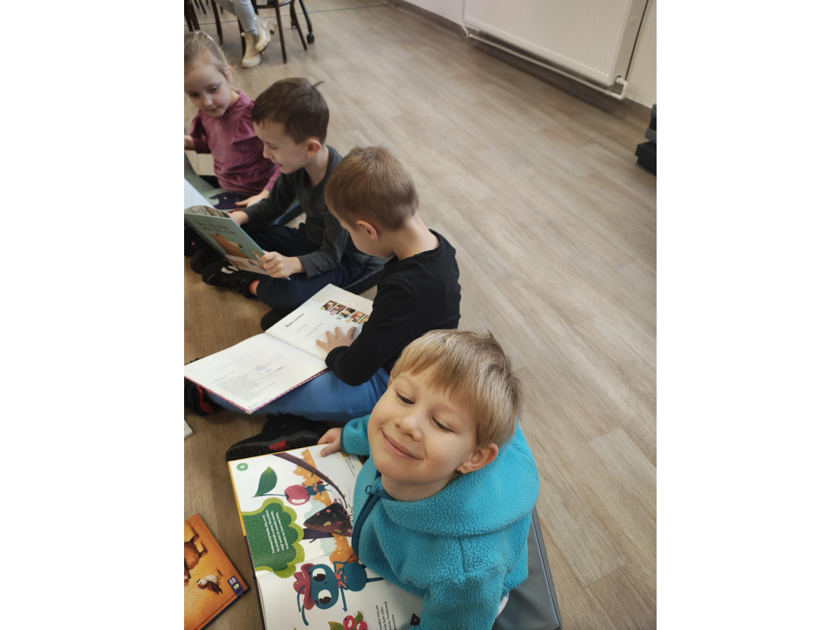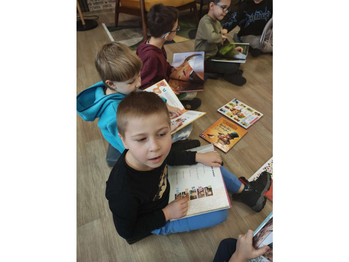 Dzieci z grupy,,Biedronki" uczestniczyły w zajęciach bibliotecznych, których tematem był Dzień Pluszowego Misia. Dzieci poznały historię pluszowego misia, rozpoznawały znane misiowe postaci bajkowe, filmowe i literackie. Wysłuchały bajki o Misiu Tulisiu. Tworzyły postać misia w zabawie ,, Wyturlaj misia". Wykonały pracę plastyczną,, Mój przyjaciel miś". Obejrzały książki o znanych misiach.