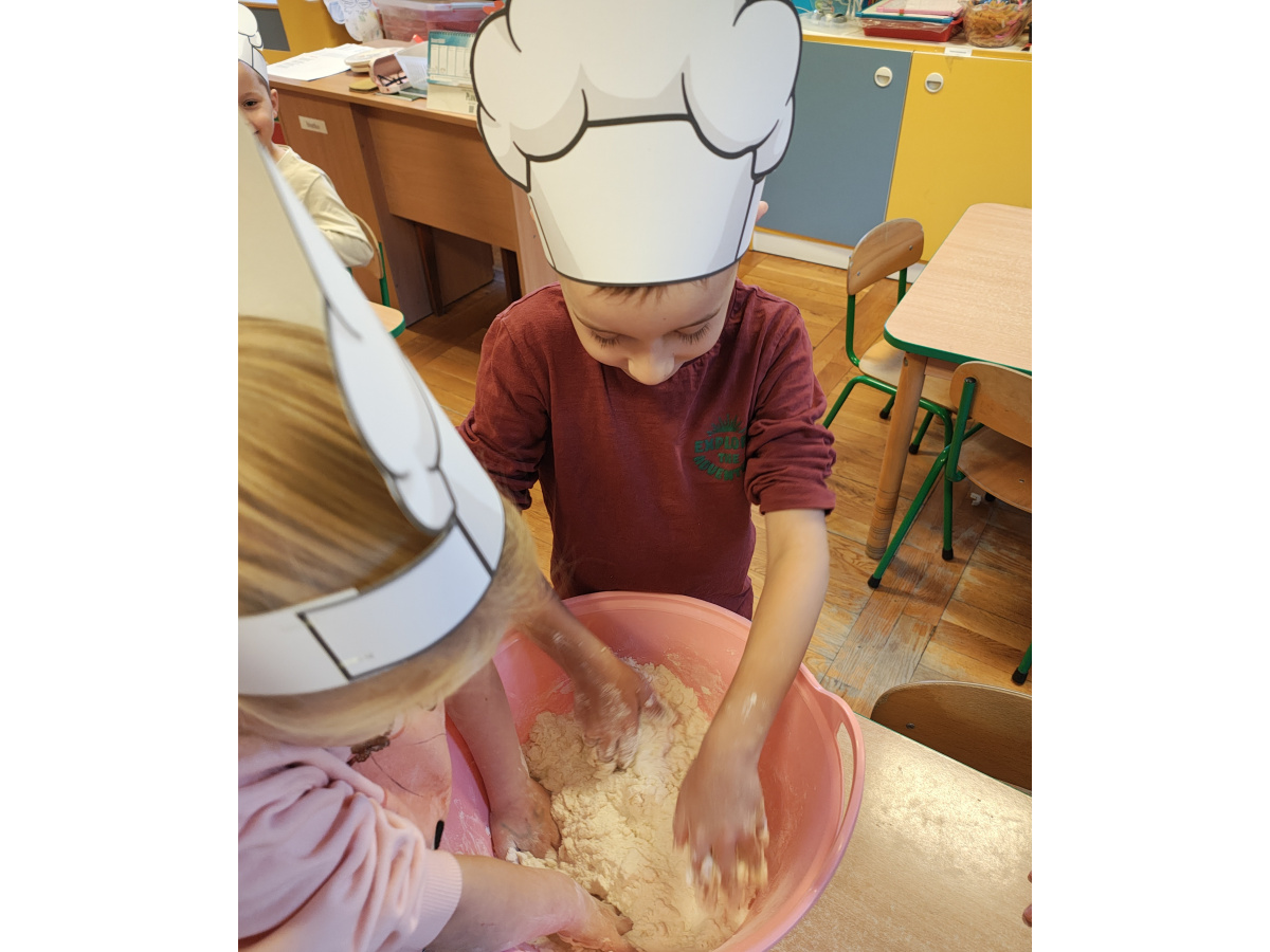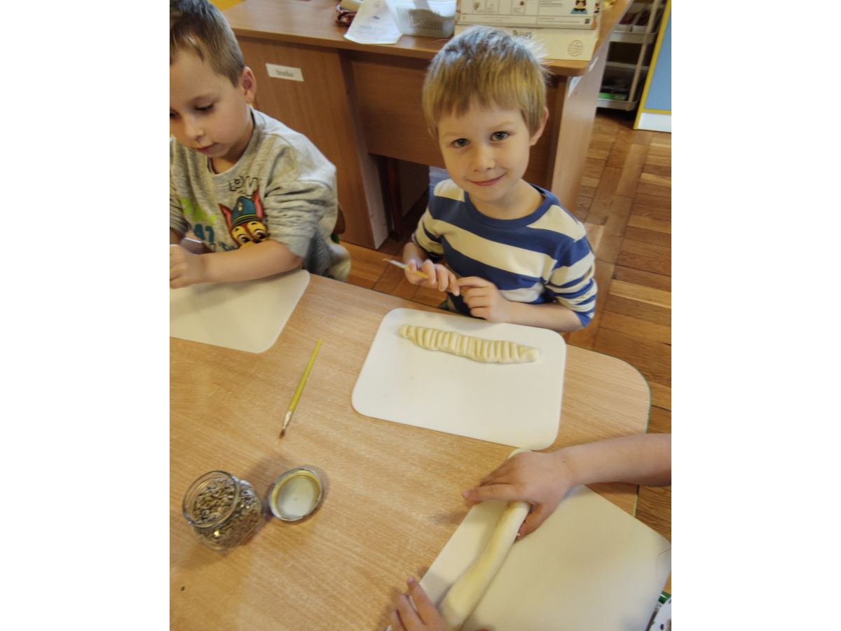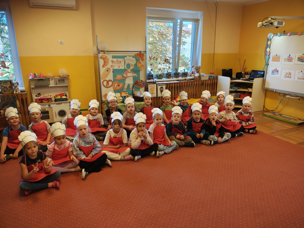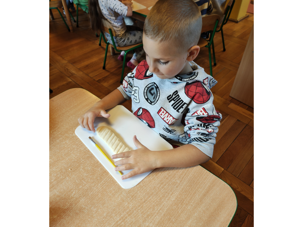 Dzieci z grupy Biedronki obchodziły 20 października Dzień Chleba. Dzieci poznały etapy produkcji chleba: od ziarenka do bochenka, poznały rodzaje zbóż oraz produkty, które z nich otrzymujemy. Dowiedziały się o pracy rolnika, młynarza i piekarza. Obejrzały film edukacyjny, który zapoznał je z procesem powstawania chleba w piekarni oraz maszynami i urządzeniami potrzebnymi do wypieku chleba.Miały okazję do degustacji różnych gatunków pieczywa i samodzielnie przygotowywały kanapki na śniadanie. Tworzyły własne modele chleba, bułeczek, rogalików z masy solnej. Poznały utwory literackie, które podkreślają szacunek do chleba, dla jedzenia i tradycji.