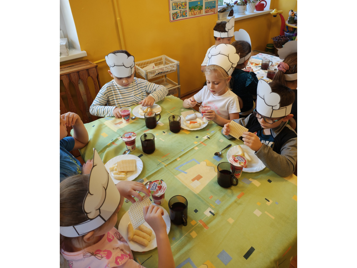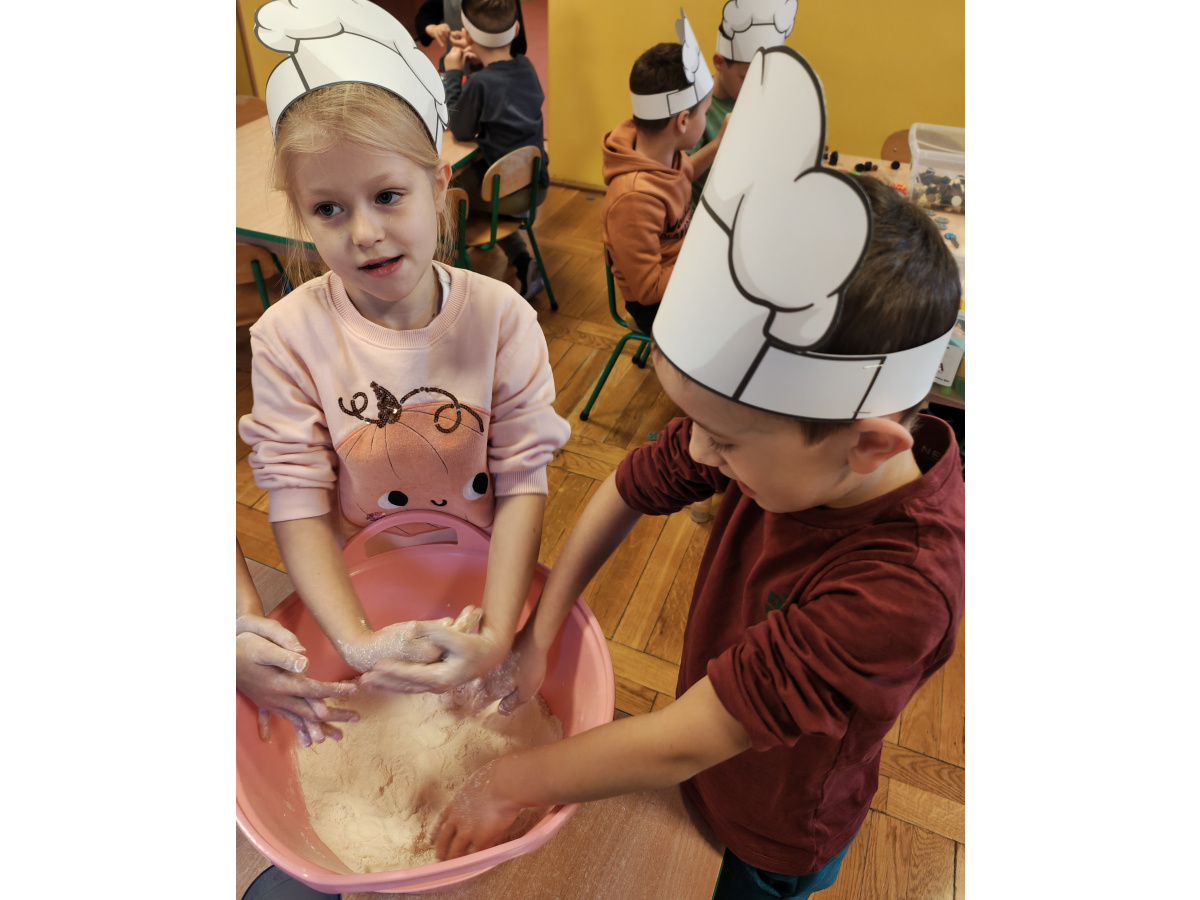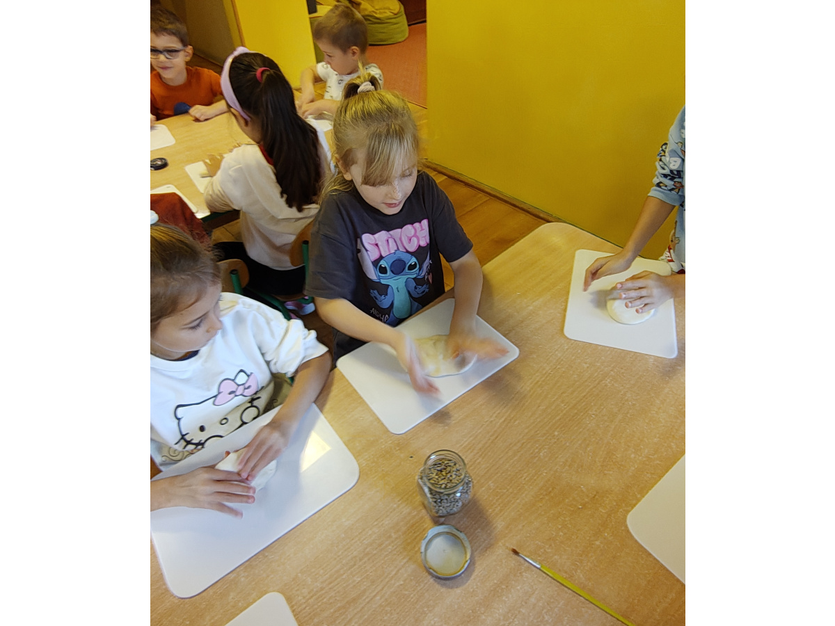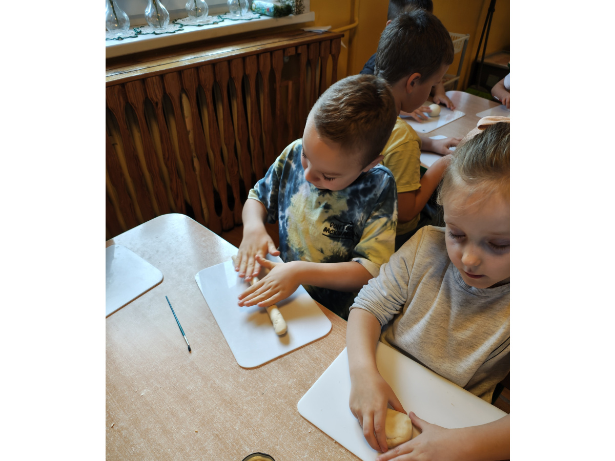 Dzieci z grupy Biedronki obchodziły 20 października Dzień Chleba. Dzieci poznały etapy produkcji chleba: od ziarenka do bochenka, poznały rodzaje zbóż oraz produkty, które z nich otrzymujemy. Dowiedziały się o pracy rolnika, młynarza i piekarza. Obejrzały film edukacyjny, który zapoznał je z procesem powstawania chleba w piekarni oraz maszynami i urządzeniami potrzebnymi do wypieku chleba.Miały okazję do degustacji różnych gatunków pieczywa i samodzielnie przygotowywały kanapki na śniadanie. Tworzyły własne modele chleba, bułeczek, rogalików z masy solnej. Poznały utwory literackie, które podkreślają szacunek do chleba, dla jedzenia i tradycji.