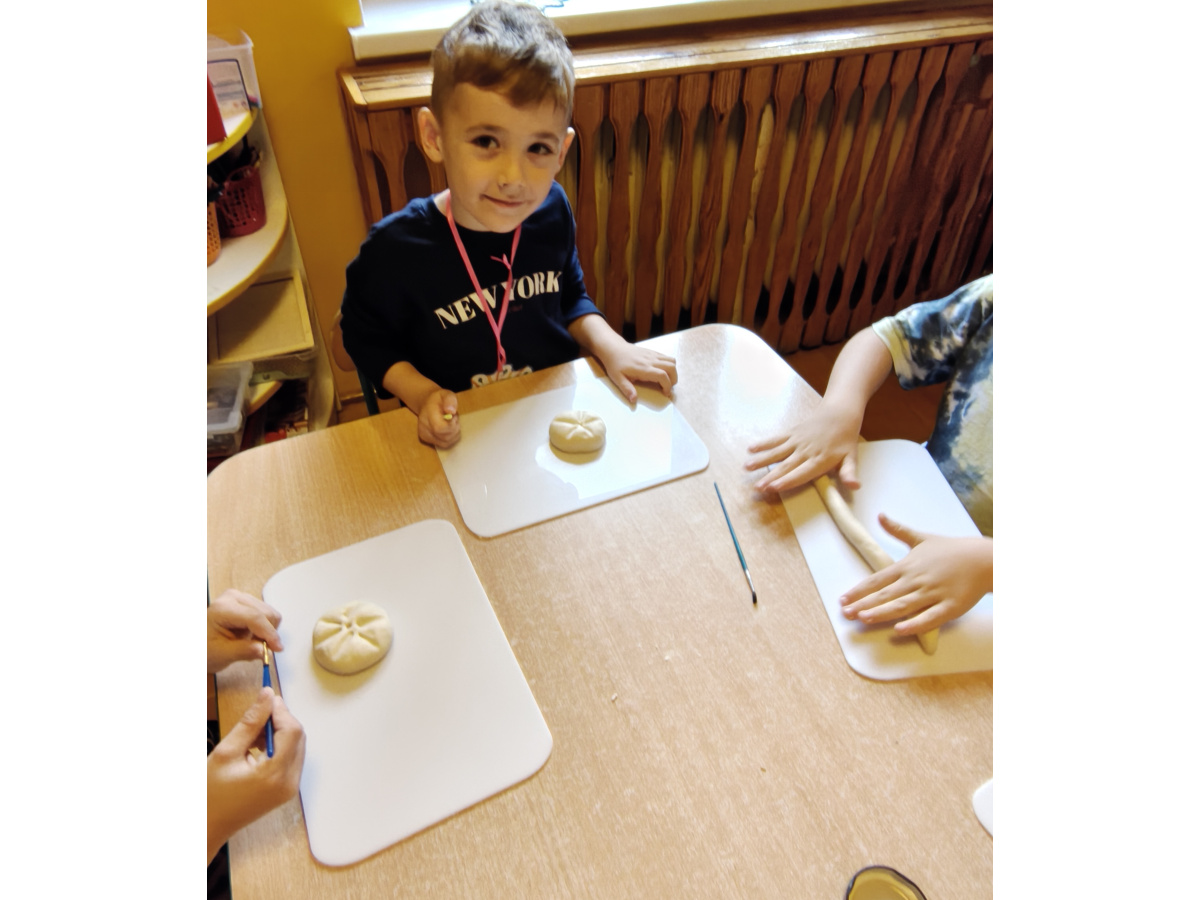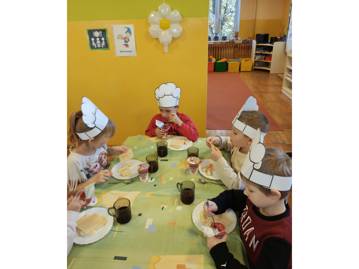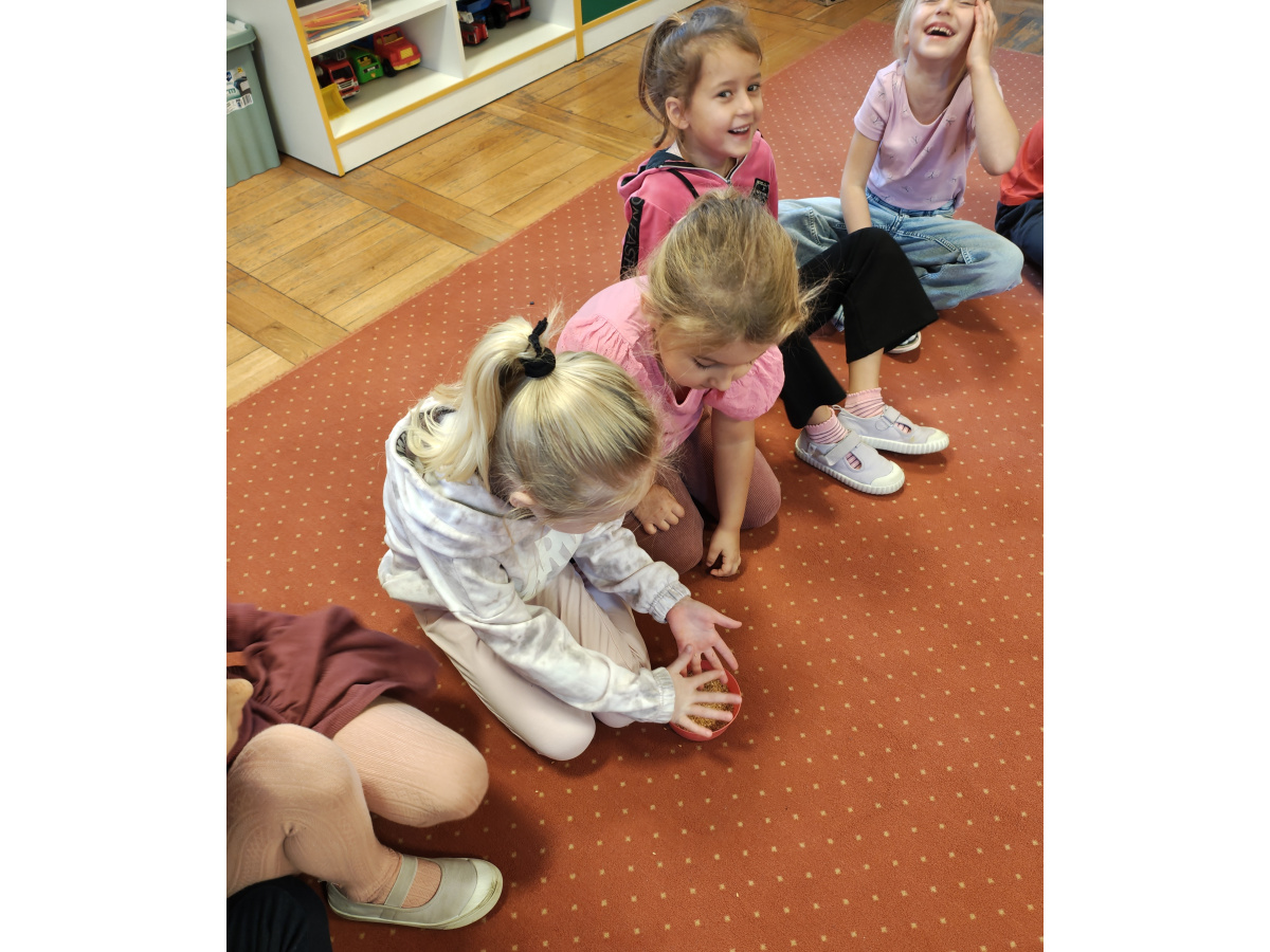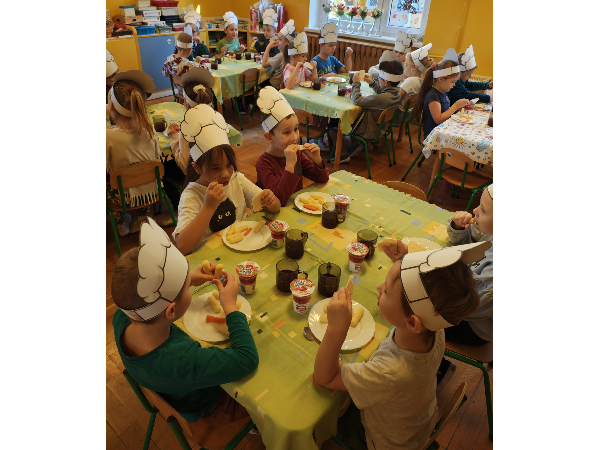 Dzieci z grupy Biedronki obchodziły 20 października Dzień Chleba. Dzieci poznały etapy produkcji chleba: od ziarenka do bochenka, poznały rodzaje zbóż oraz produkty, które z nich otrzymujemy. Dowiedziały się o pracy rolnika, młynarza i piekarza. Obejrzały film edukacyjny, który zapoznał je z procesem powstawania chleba w piekarni oraz maszynami i urządzeniami potrzebnymi do wypieku chleba.Miały okazję do degustacji różnych gatunków pieczywa i samodzielnie przygotowywały kanapki na śniadanie. Tworzyły własne modele chleba, bułeczek, rogalików z masy solnej. Poznały utwory literackie, które podkreślają szacunek do chleba, dla jedzenia i tradycji.