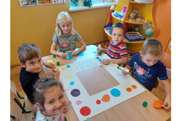 16 września dzieci z grupy "Biedronki" obchodziły Międzynarodowy Dzień Kropki. Z tej okazji dzieci obejrzały krótki filmik o dziewczynce imieniem Vashti pt. "Kropka". Wzięły udział w zabawie ruchowej z rekwizytami pt. "Pacnij kropkę" przy piosence "Kropka". Następnie aktywnie uczestniczyły w zabawie dydaktycznej z kodowaniem "Kolorowe kropki". Zadaniem dzieci była pomoc kropeczkom wrócić na właściwe miejsce. Za wykonane zadanie dzieci otrzymały medale. Na koniec "Biedroneczki" samodzielnie wycinały kolorowe kropki, którymi ozdobiły ramki. Dzięki kropkowym ramkom mogły powstać super zdjęcia. To był dzień pełen niesamowitej zabawy.
