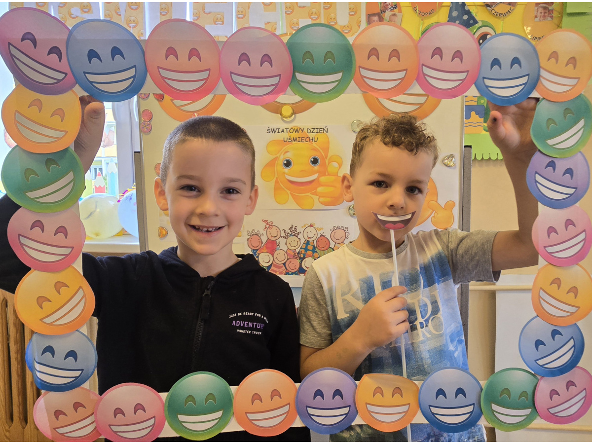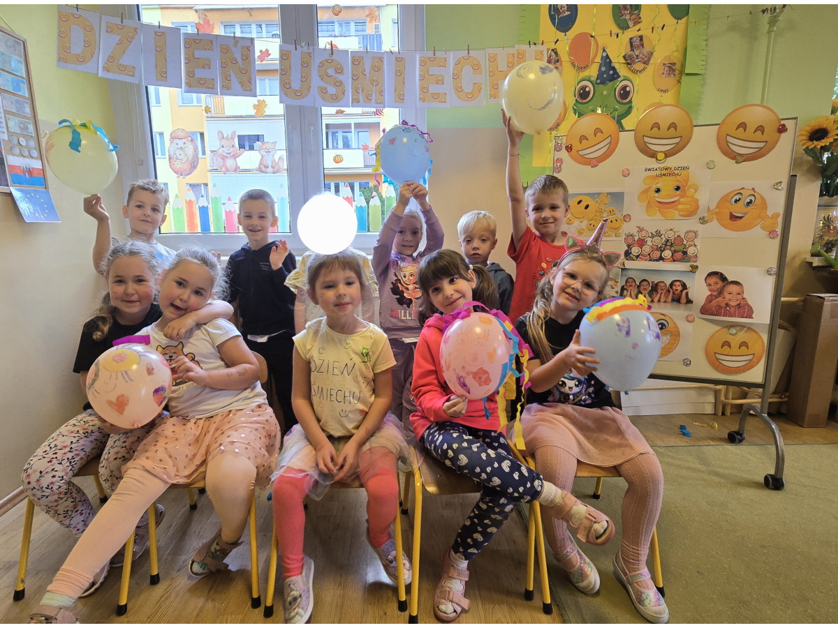 Dzieci z grupy Żabek obchodziły "Dzień Uśmiechu"! Był to dzień pełen radości i wspólnej zabawy. Dzieci brały udział w różnych aktywnościach – kodowały, rysowały kolorowe balony oraz tworzyły własne portrety. Nie zabrakło też zabaw z piłką i wielu powodów do śmiechu. Podczas wspólnych działań dzieci przekonały się, że uśmiech to najlepszy sposób, by uczynić świat piękniejszym.