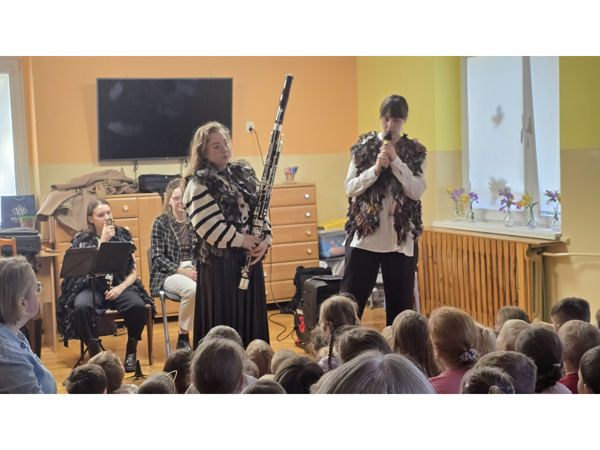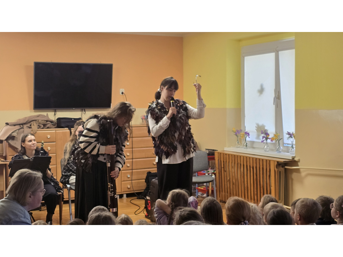 Dzieci z naszego przedszkola wzięły udział w wyjątkowym koncercie w wykonaniu muzyków Filharmonii Pomorskiej pt. „Muzyczna ptasiarnia”. Podczas spotkania przedszkolaki miały okazję poznać brzmienie instrumentów dętych drewnianych, takich jak obój, fagot i klarnet. Artystki w ciekawy i przystępny sposób zaprezentowały możliwości tych instrumentów, a dzieci z dużym zainteresowaniem słuchały muzycznych opowieści inspirowanych światem ptaków. Było to niezwykle inspirujące i radosne spotkanie z muzyką.