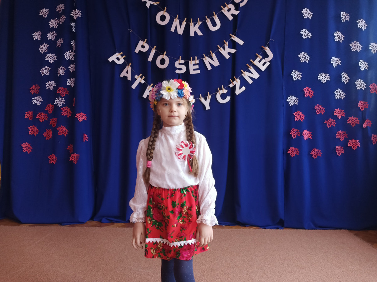 Zosia z grupy Biedronek reprezentowała nasze przedszkole w Międzyprzedszkolnym Konkursie Piosenki Patriotycznej pt. "Jesteśmy Polakami". Zosia zaśpiewała piosenkę pt. " Polska to mój kraj". Zosia otrzymała wyróżnienie za swój wytęp. Serdeczne gratulacje!