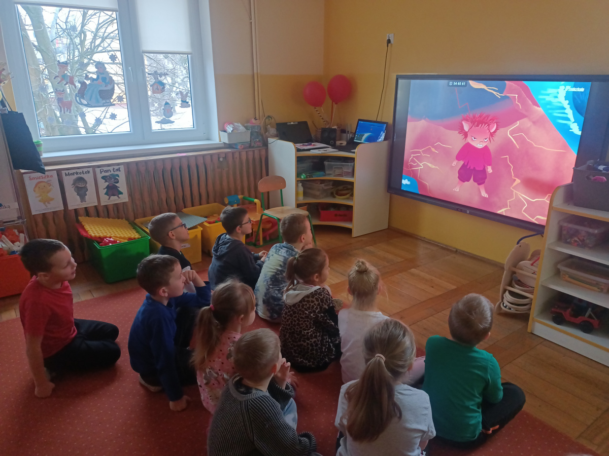Dzieci z grupy "Biedronki w ramach realizacji projektu edukacyjnego "Czuciaki w krainie emocji" w poznawały kolejnych bohaterów emocji czyli "Gniewka" mieszkańca wyspy złości oraz "Bojka" mieszkańca wyspy strachu. Dzieci poznały historię poszczególnych bohaterów. Dzieci poznały sposoby radzenia sobie ze złością i strachem.