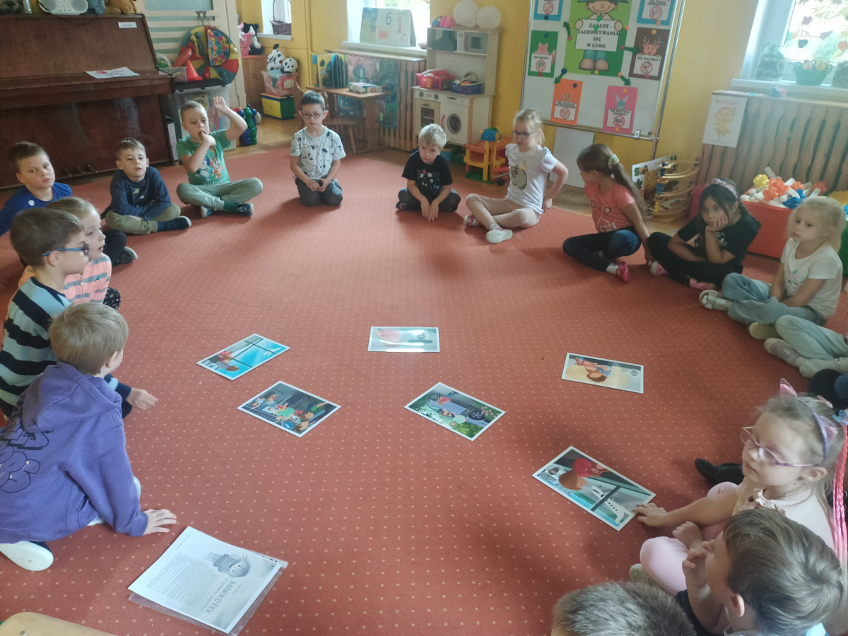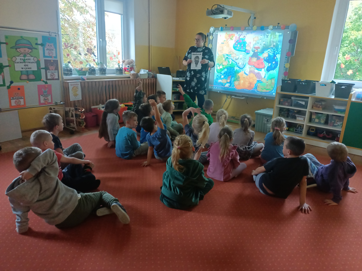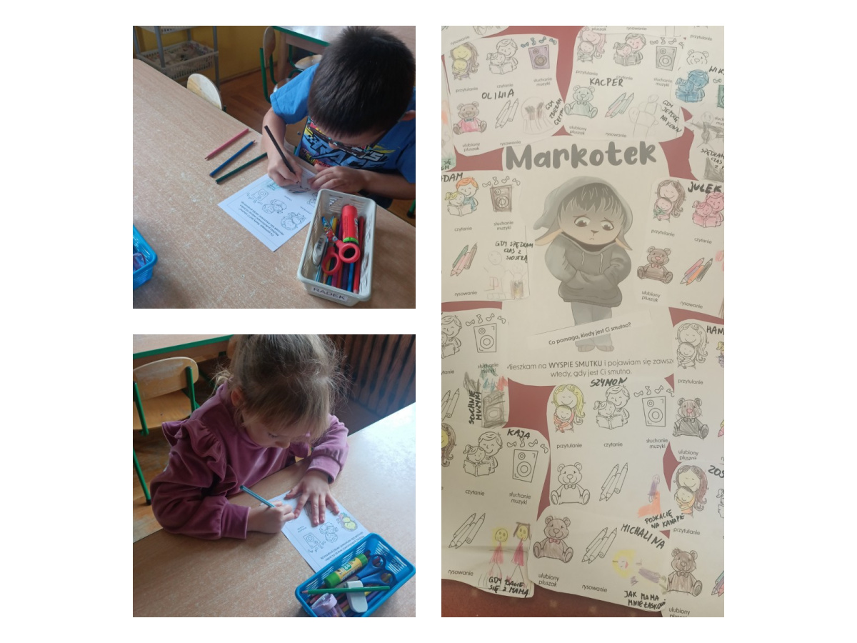 Dzieci z grupy "Biedronki w ramach realizacji projektu edukacyjnego "Czuciaki w krainie emocji" w październiku wybrały się na wyspę smutku. Dzieci poznały historię pt. "Markoterk z wyspy smutku" oraz wykonały plakat prezentujący sposoby na poprawę humoru.