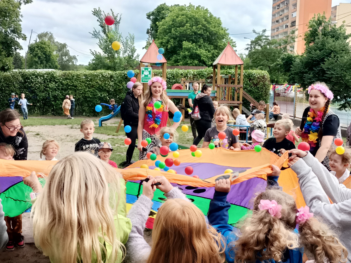 W naszym przedszkolu odbył się kolorowy i radosny festyn rodzinny, zorganizowany przez Radę Rodziców przy wsparciu pracowników przedszkola. Było to wyjątkowe wydarzenie pełne uśmiechu, zabawy i wspólnej radości. Na dzieci i ich bliskich czekało wiele atrakcji m.in. budka 360°, gdzie można było nagrać pamiątkowe filmiki, a także wata cukrowa i różnorodne słodkości, które osłodziły ten wyjątkowy dzień. Nie zabrakło również zabaw z animatorami, którzy zadbali o fantastyczną atmosferę. Wielką niespodzianką była wizyta Sticha, który podbił serca wszystkich przedszkolaków.