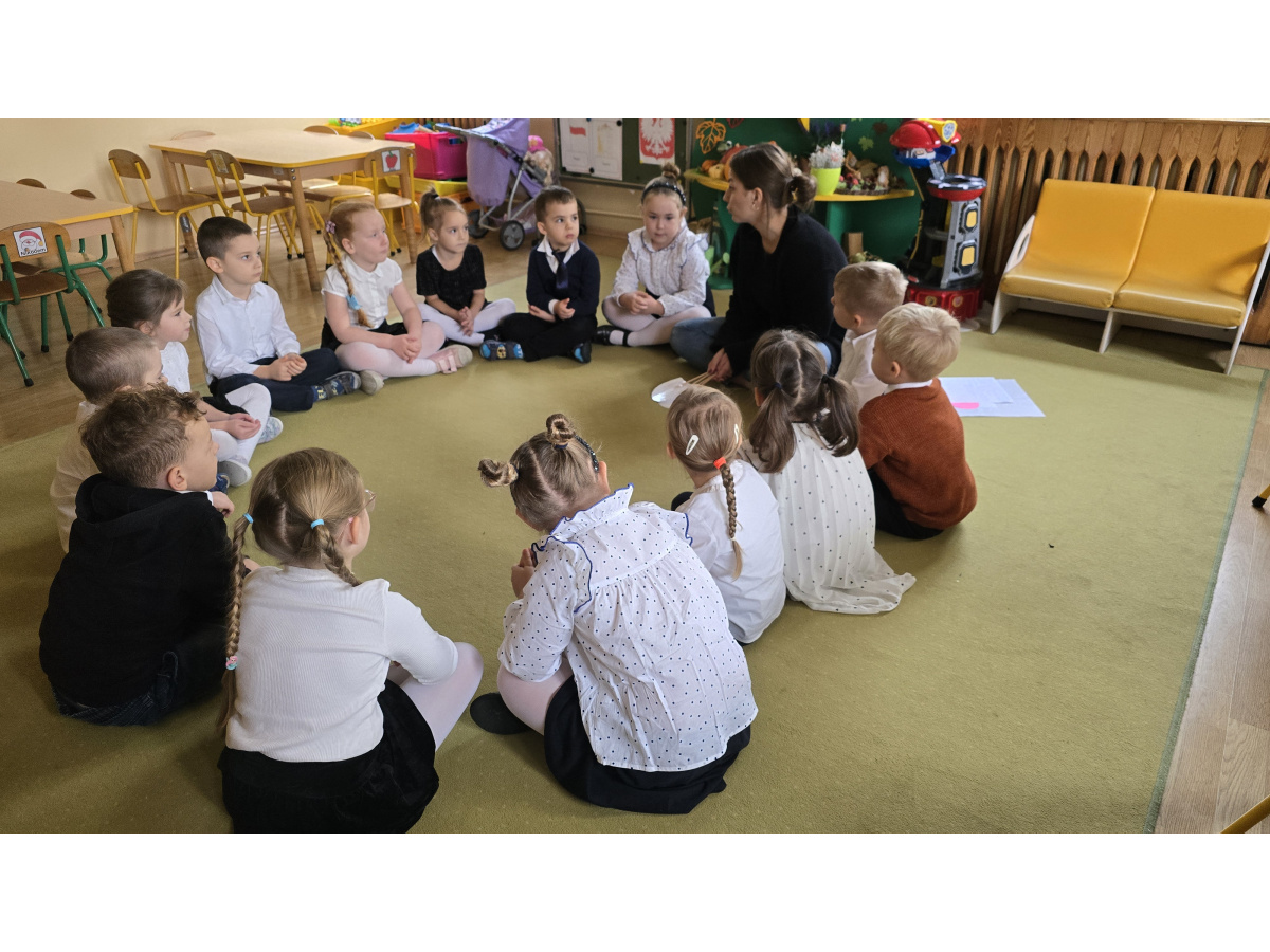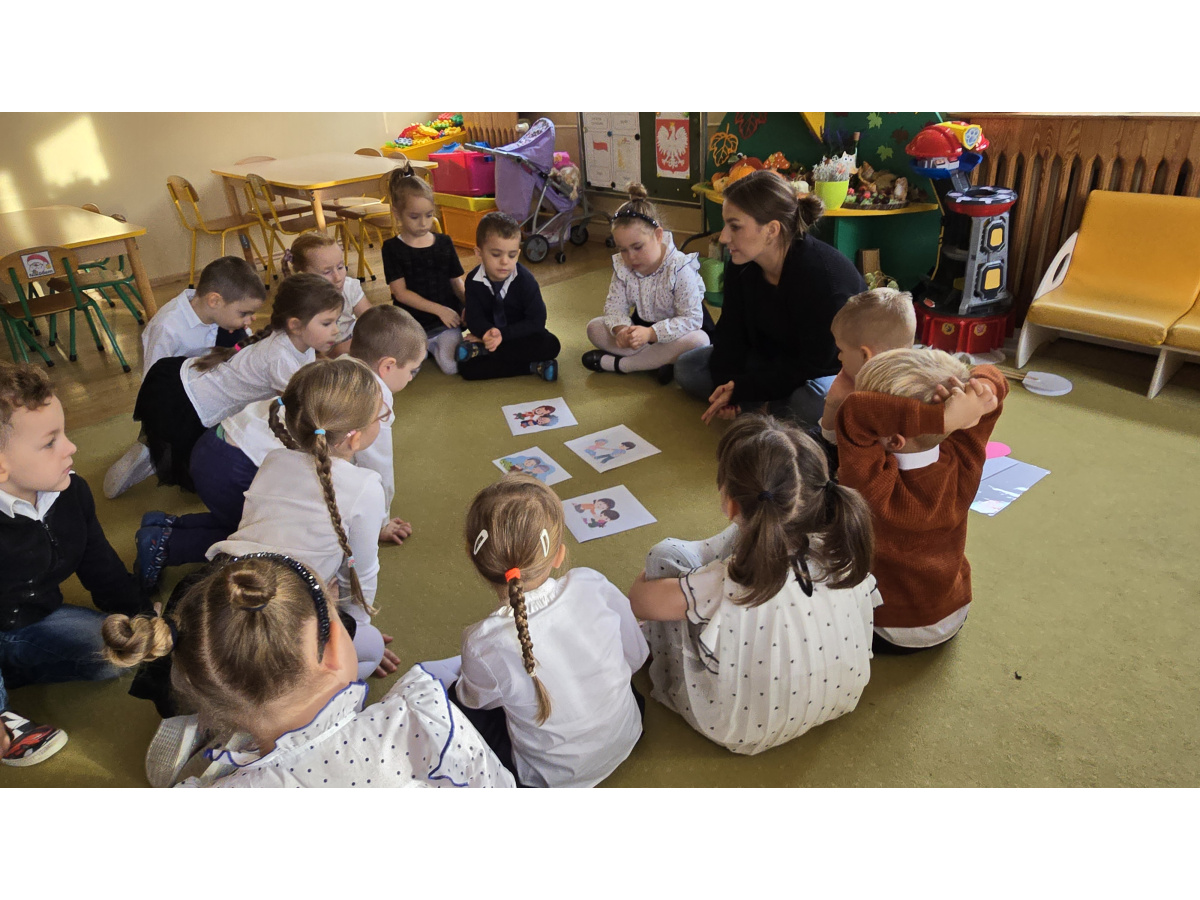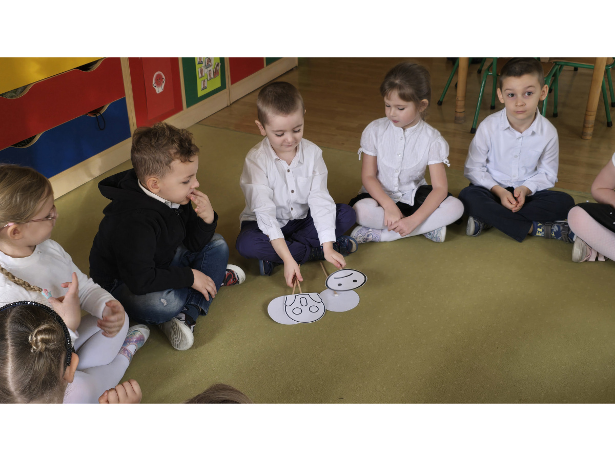 Dzieci z grupy Żabek uczestniczyły w zajęciach z Panią Psycholog, podczas których rozmawiały o emocjach- tych małych i dużych, radosnych i trudnych. Przedszkolaki zastanawiały się, czym są emocje, jak można je rozpoznawać u siebie i innych, a także jak sobie z nimi radzić w codziennych sytuacjach. Podczas zajęć nie zabrakło rozmów o empatii, czyli o tym, jak ważne jest rozumienie i wspieranie innych. Dzieci dzieliły się swoimi doświadczeniami, uczyły się nazywać uczucia, dostrzegać, że każda emocja jest potrzebna.
