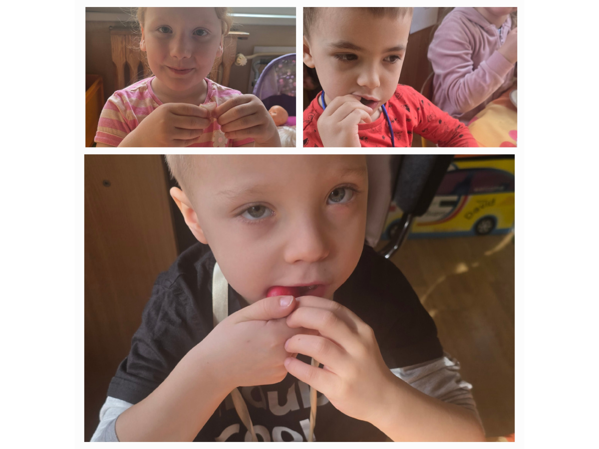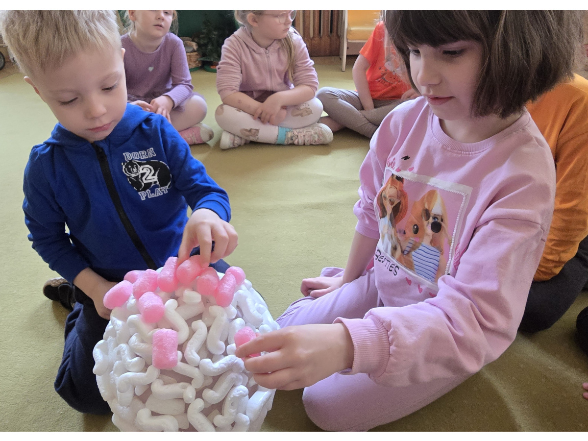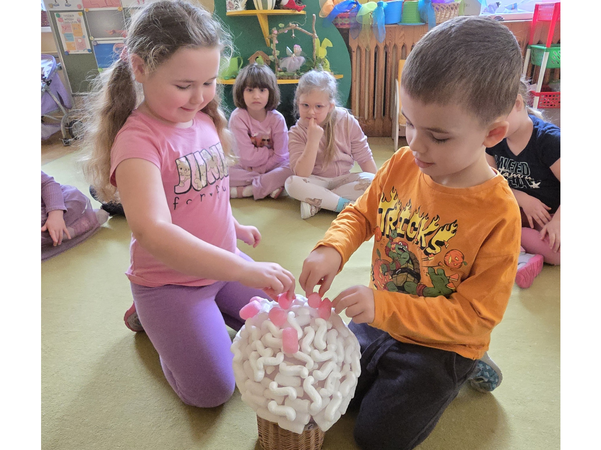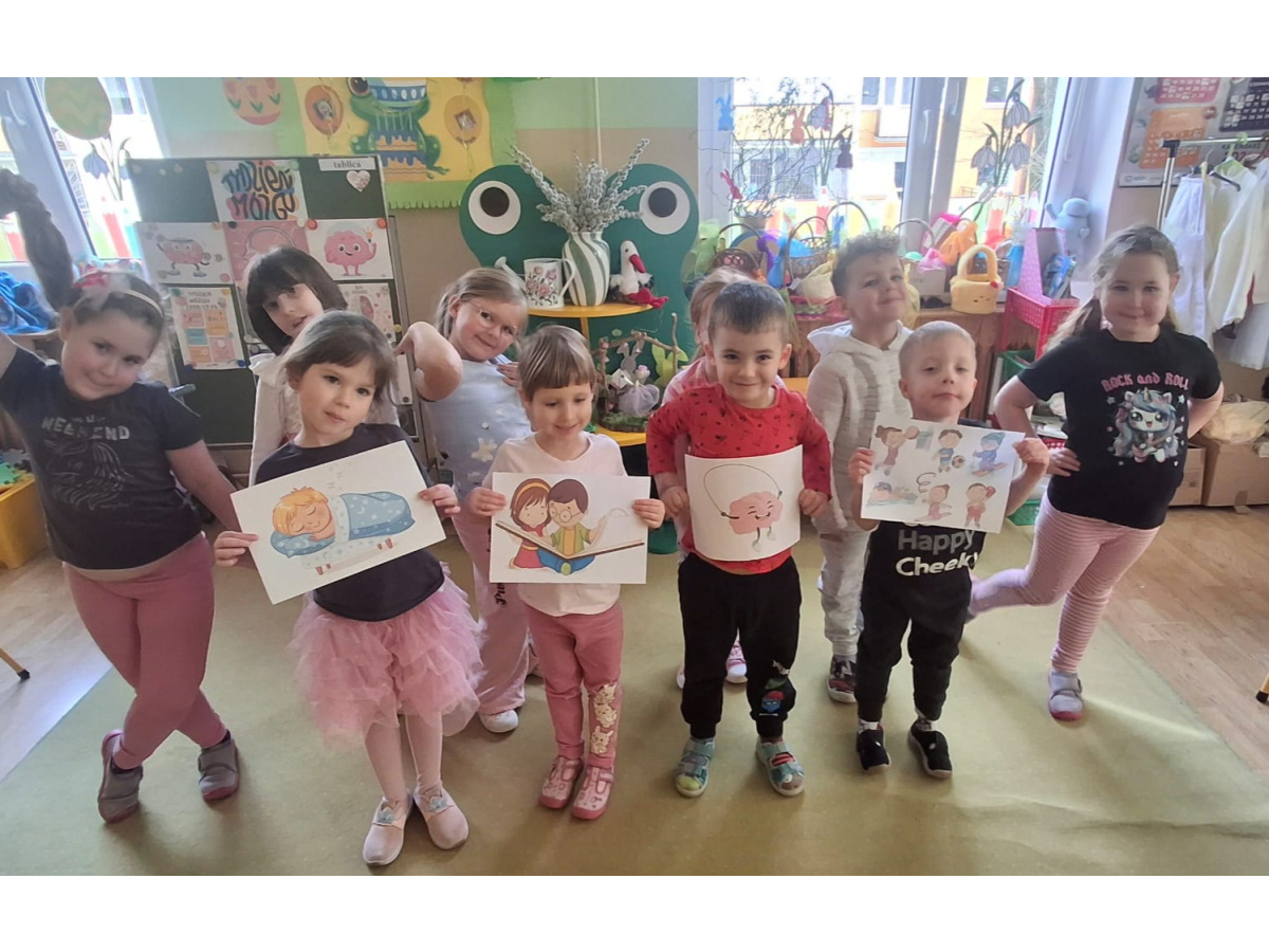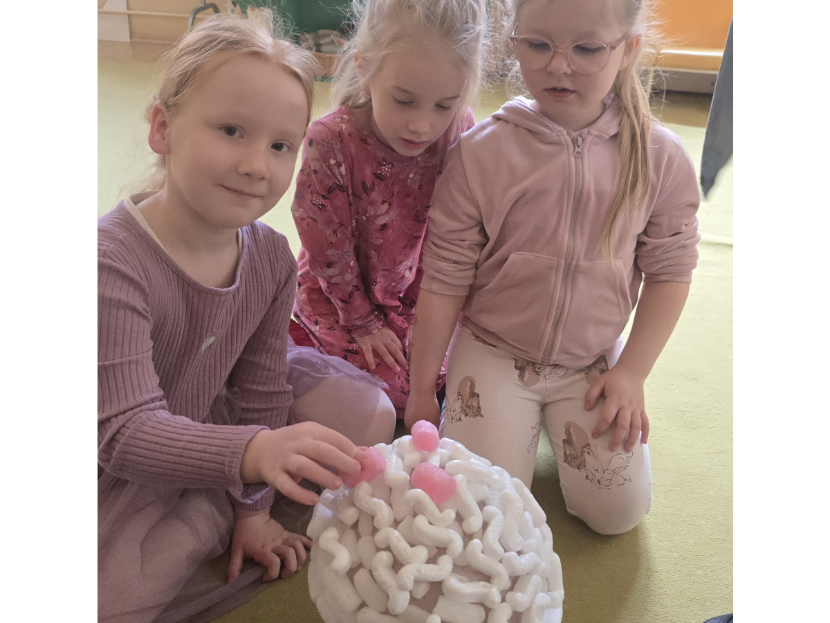 Dzieci z grupy Żabek z wielkim zaangażowaniem obchodziły Tydzień Mózgu. Był to czas pełen ciekawych doświadczeń, odkryć i radosnej nauki poprzez zabawę. Przedszkolaki dowiedziały się wielu interesujących informacji o tym, jak działa nasz mózg i dlaczego warto o niego dbać. Z ogromną kreatywnością wykonały własną makietę mózgu, rozwijając przy tym wyobraźnię. Żabki miały okazję poznawać i smakować różnorodne warzywa oraz owoce, ucząc się, jak ważne jest zdrowe odżywianie dla prawidłowego funkcjonowania organizmu i koncentracji. Podejmowały także różne wyzwania i zadania wspierające rozwój ich wiedzy o zdrowych nawykach. Nie zabrakło również aktywności ruchowych, taneczne przerwy w poszczególnych aktywnościach dodawały energii i wspierały koncentrację podczas kolejnych działań. Dużo radości przyniósł także dzień z planszówkami, który rozwijał umiejętność współpracy, logicznego myślenia oraz cierpliwość. W trakcie tygodnia dzieci rozwiązywały liczne zadania logiczne i matematyczne oraz ćwiczyły percepcję wzrokową.