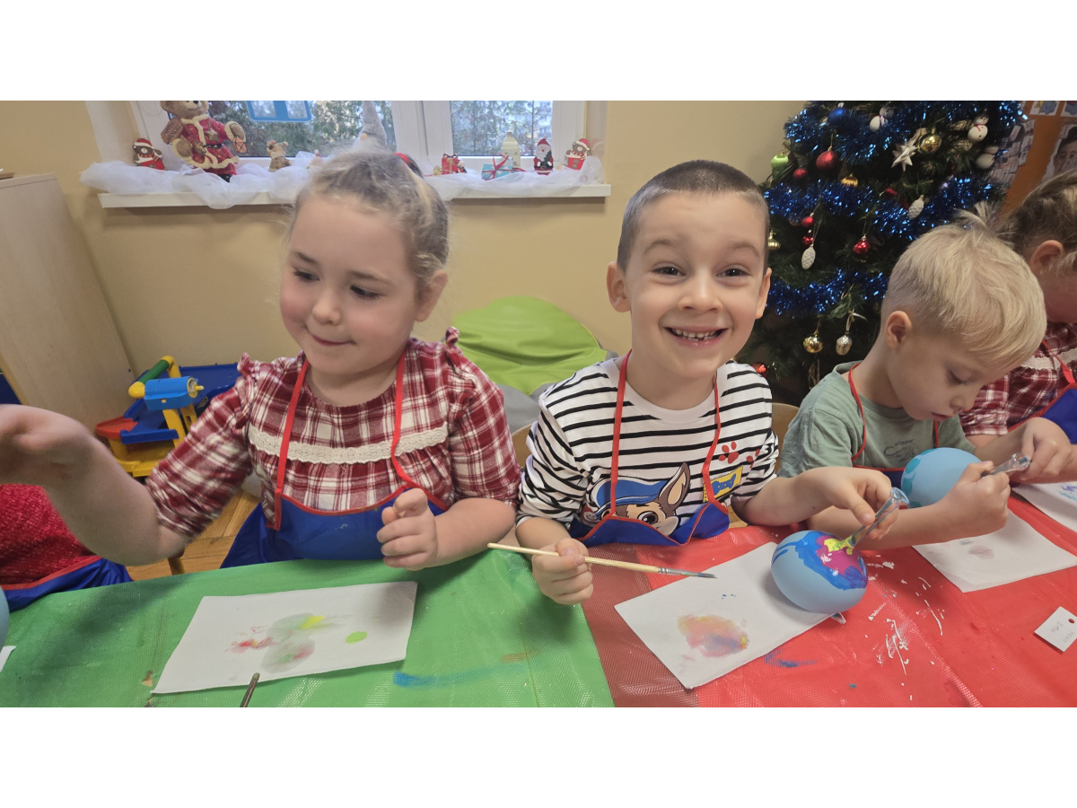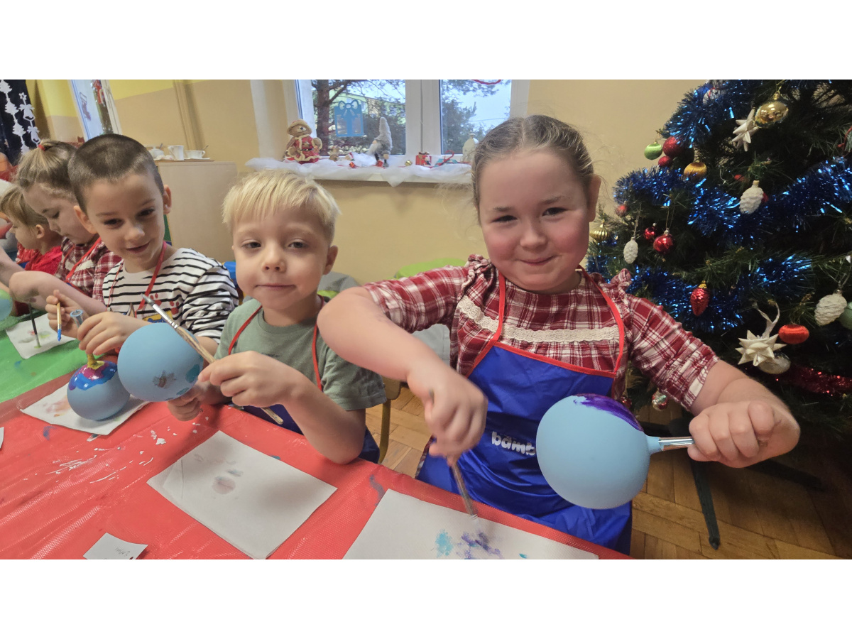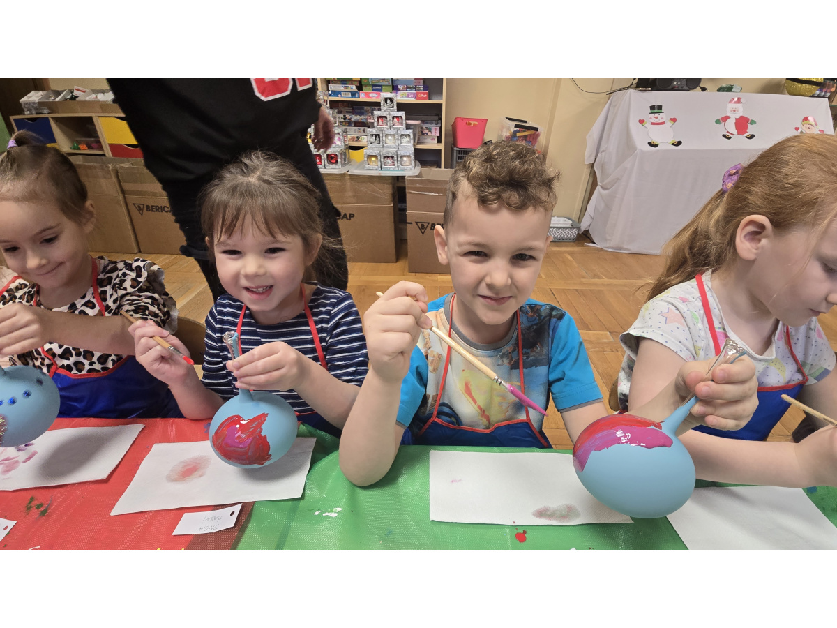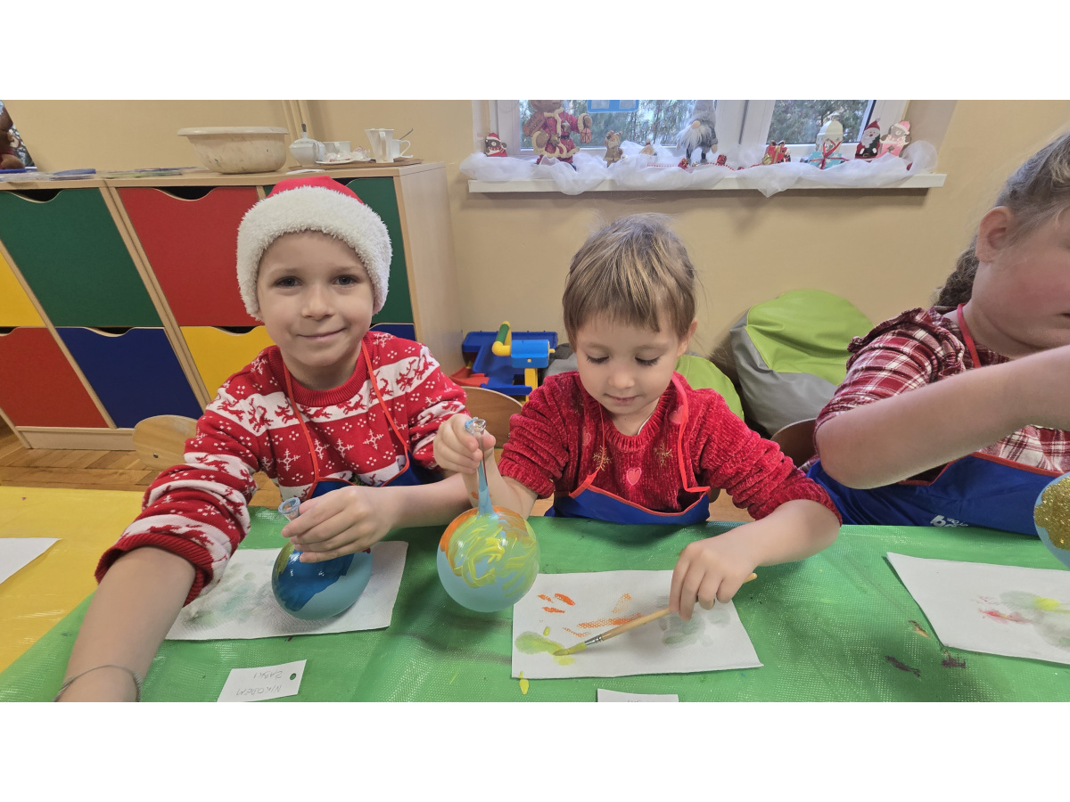 Dzieci wzięły udział w wyjątkowych warsztatach tworzenia bombek choinkowych. Podczas zajęć dowiedziały się, jak powstają tradycyjne bombki oraz jakie etapy prowadzą do stworzenia gotowej ozdoby. Największą atrakcją było samodzielne ozdabianie własnych bombek- mali artyści z zaangażowaniem malowali i tworzyli niepowtarzalne świąteczne dzieła.