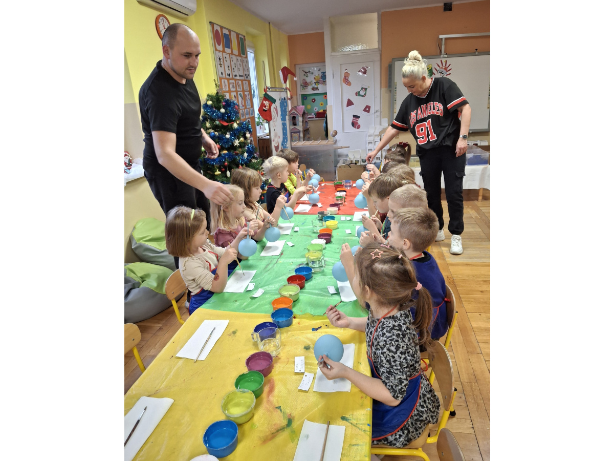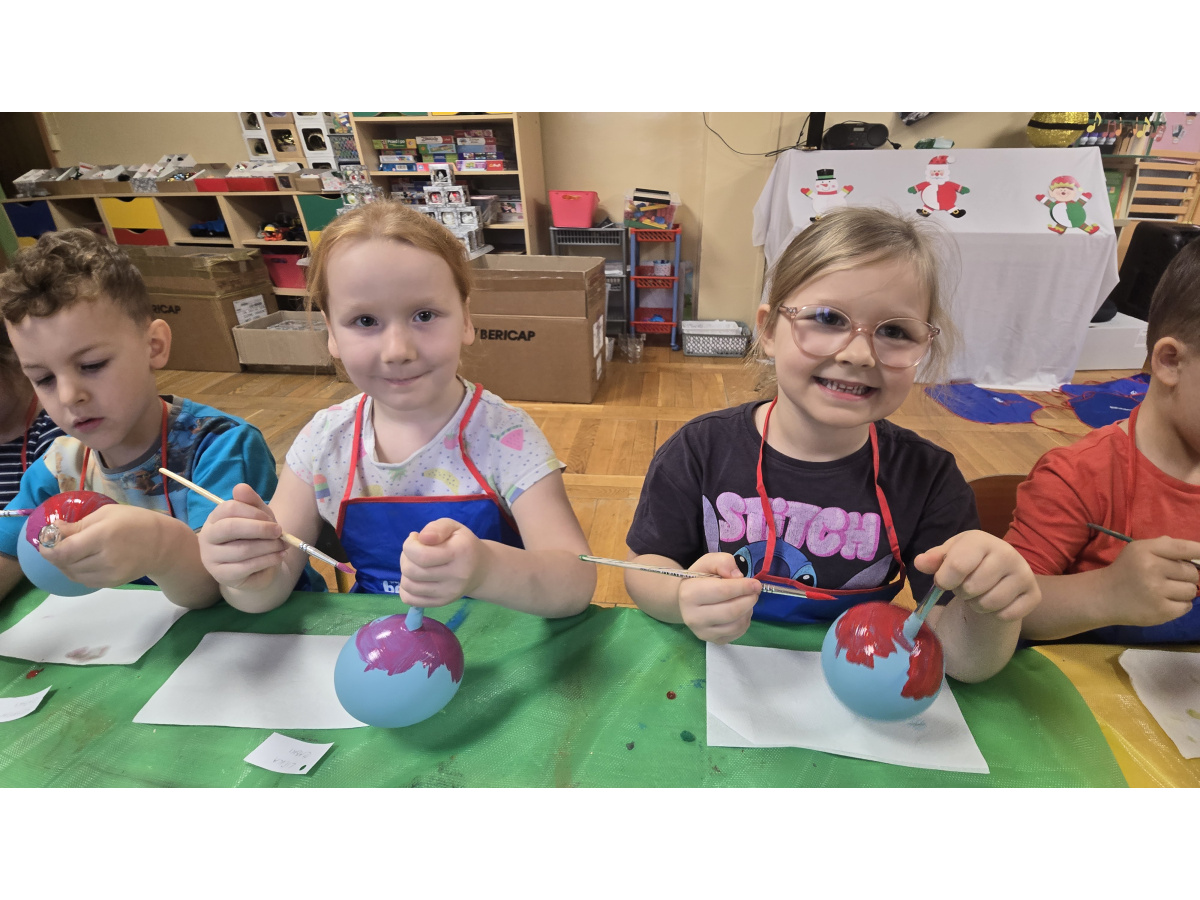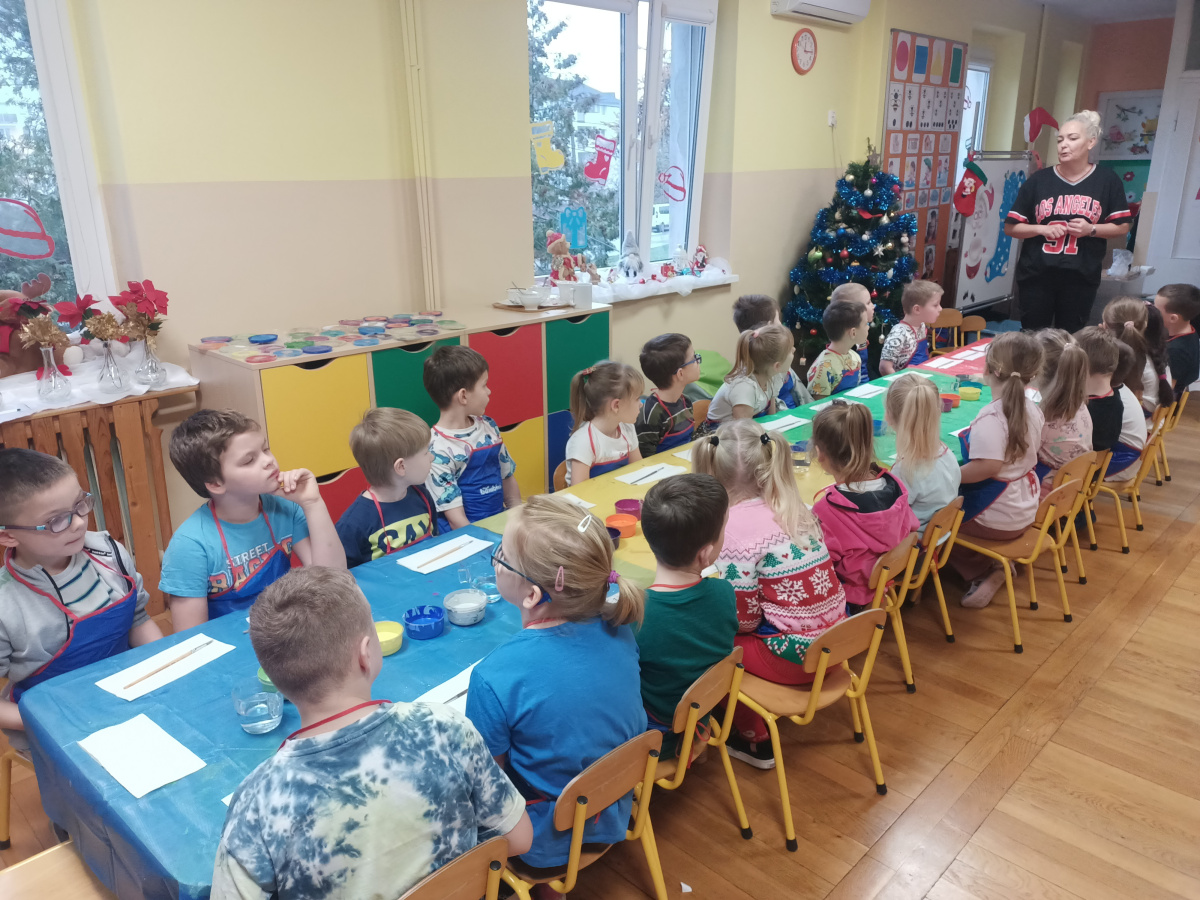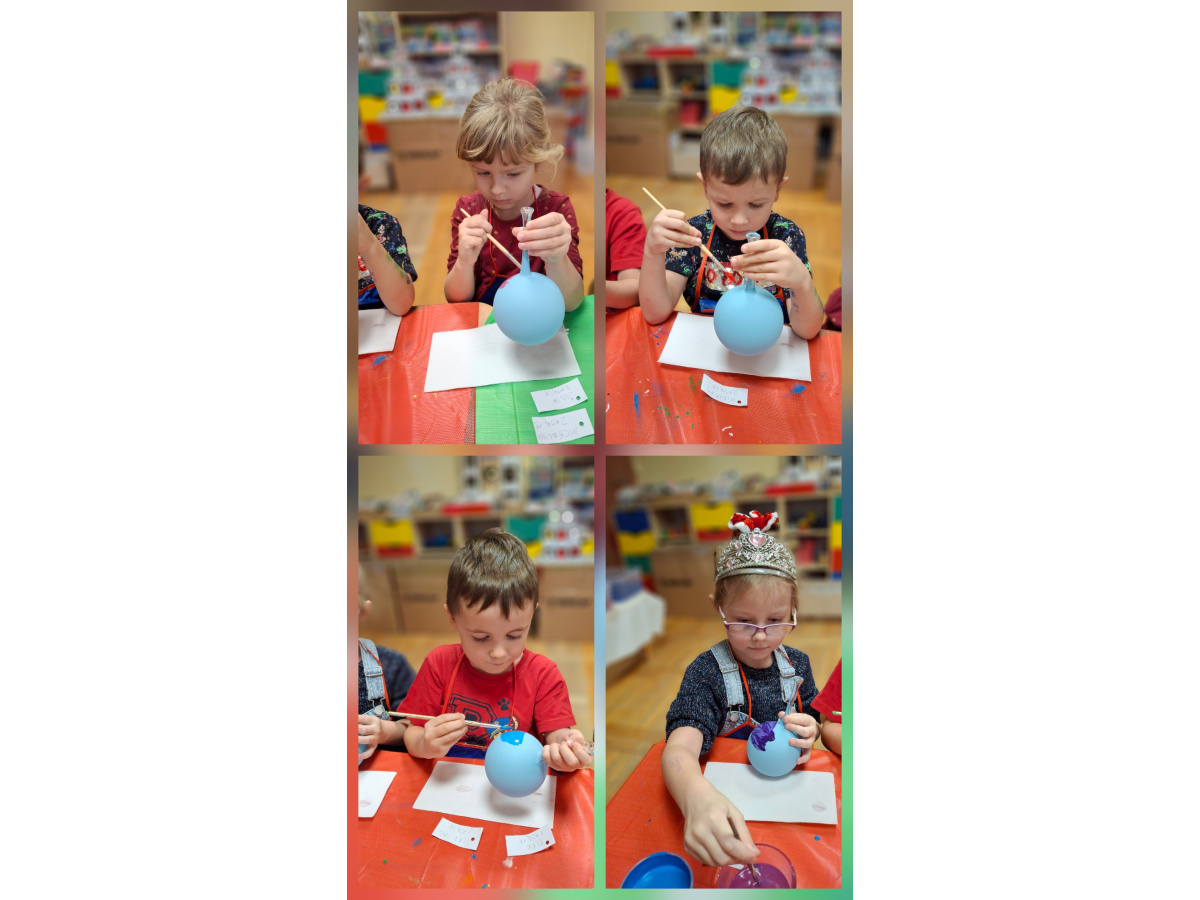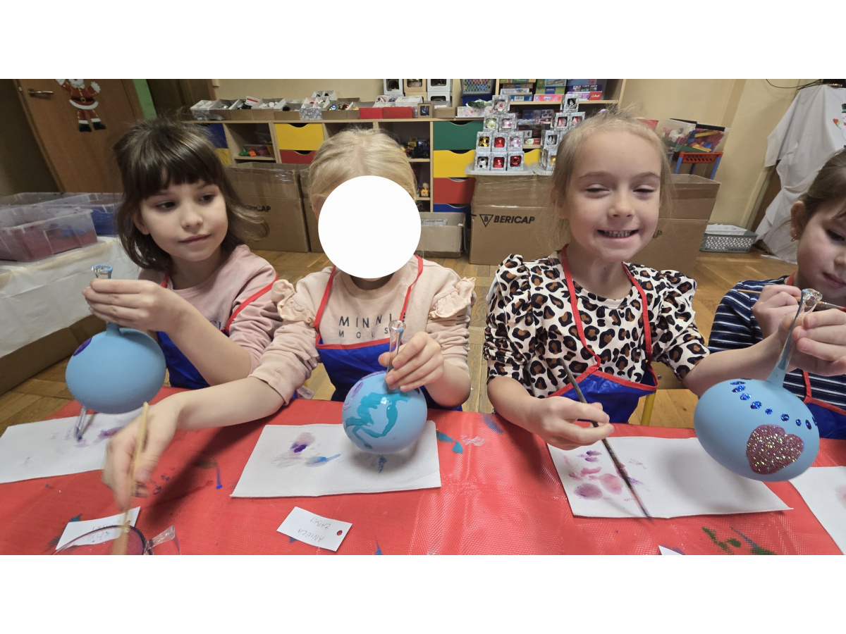 Dzieci wzięły udział w wyjątkowych warsztatach tworzenia bombek choinkowych. Podczas zajęć dowiedziały się, jak powstają tradycyjne bombki oraz jakie etapy prowadzą do stworzenia gotowej ozdoby. Największą atrakcją było samodzielne ozdabianie własnych bombek- mali artyści z zaangażowaniem malowali i tworzyli niepowtarzalne świąteczne dzieła.