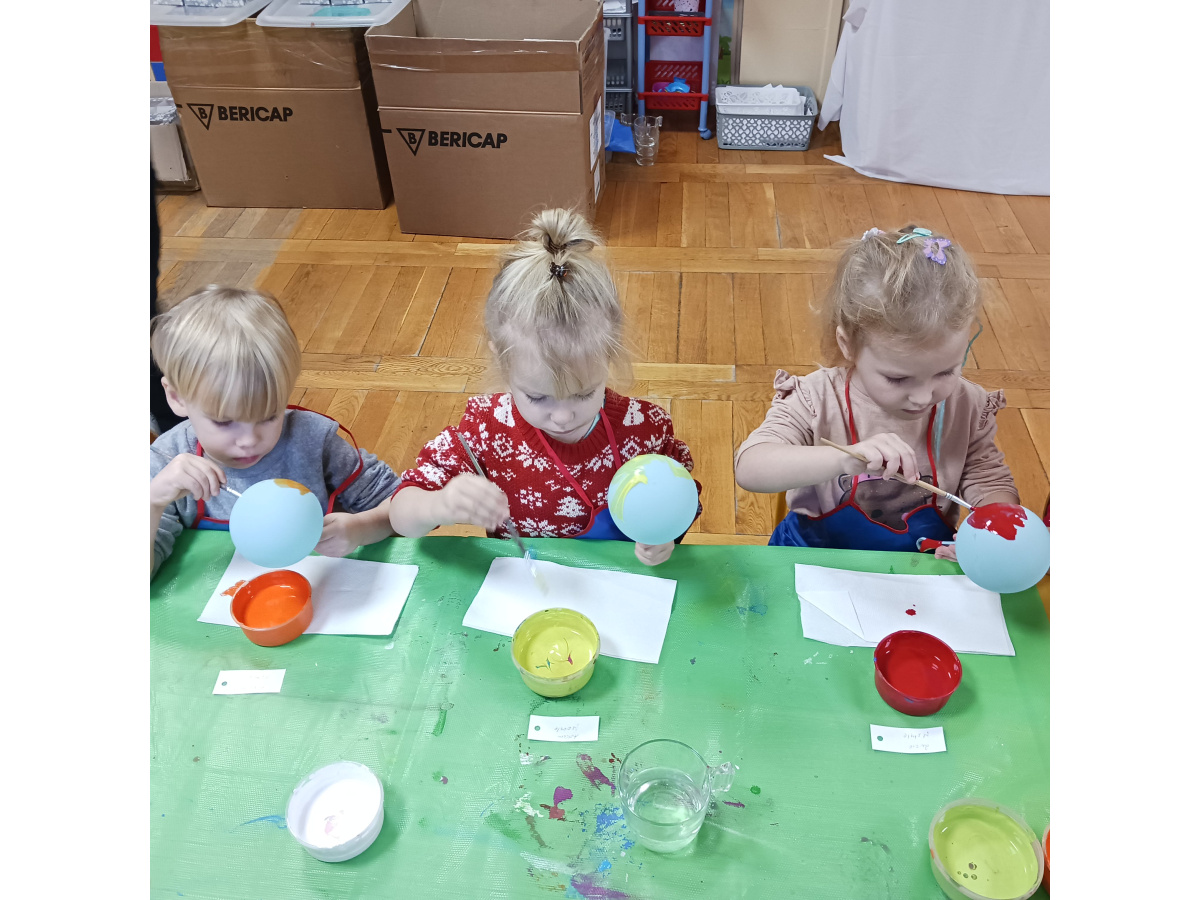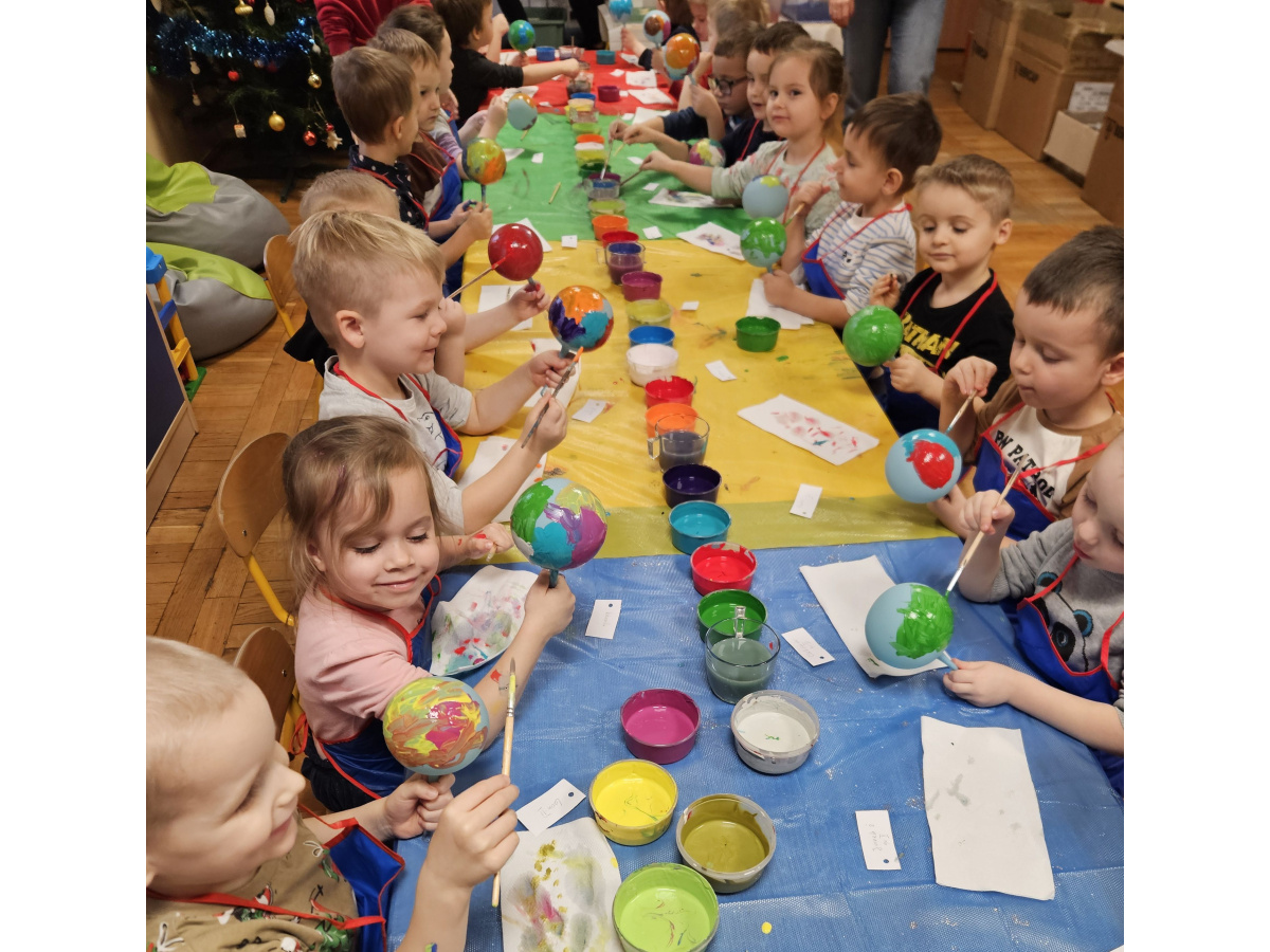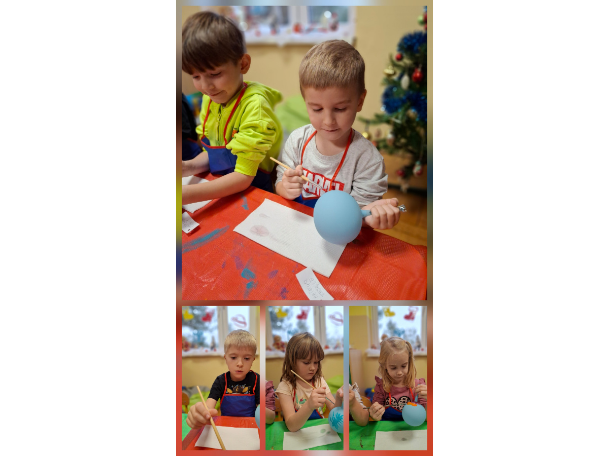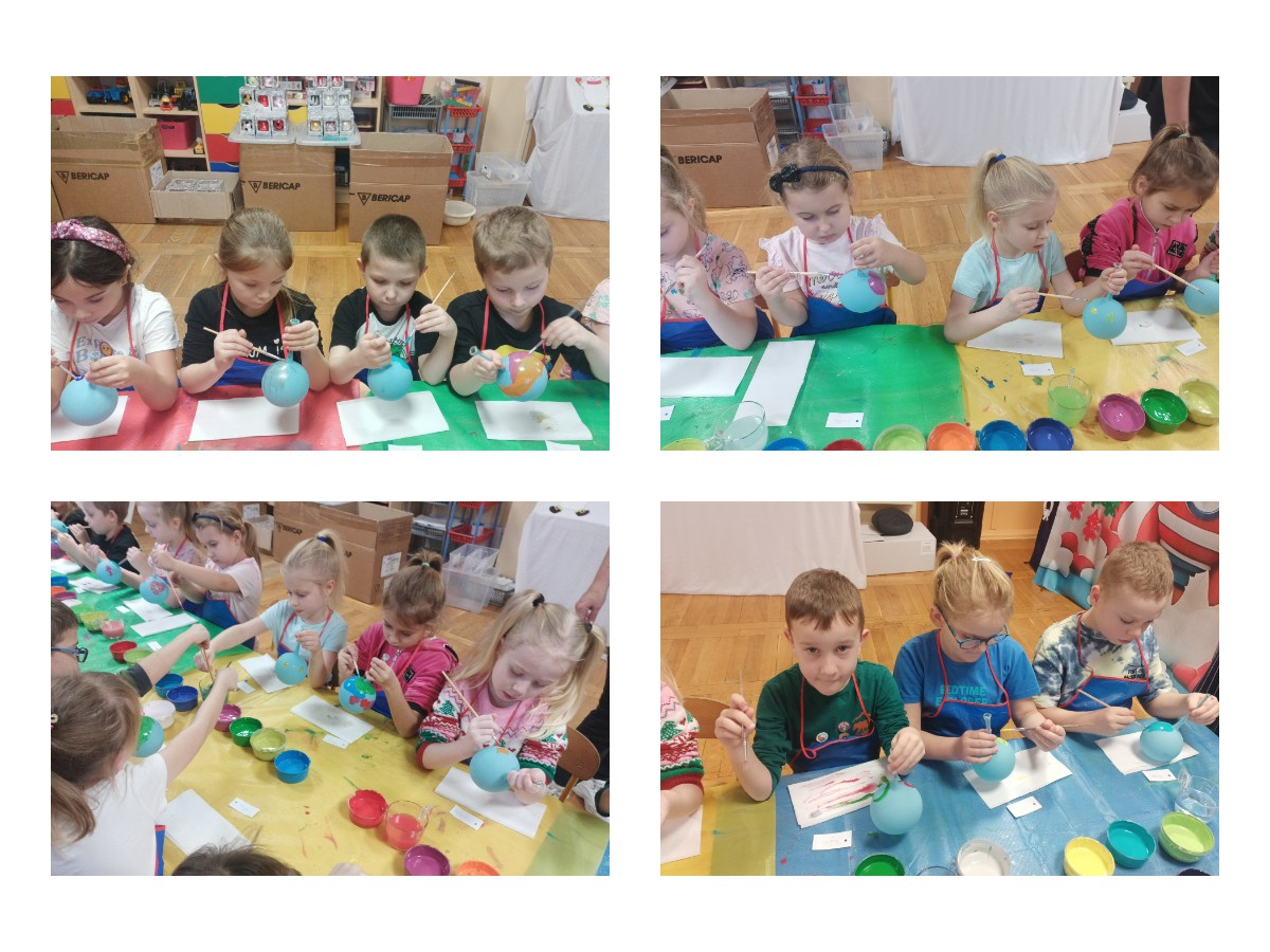 Dzieci wzięły udział w wyjątkowych warsztatach tworzenia bombek choinkowych. Podczas zajęć dowiedziały się, jak powstają tradycyjne bombki oraz jakie etapy prowadzą do stworzenia gotowej ozdoby. Największą atrakcją było samodzielne ozdabianie własnych bombek- mali artyści z zaangażowaniem malowali i tworzyli niepowtarzalne świąteczne dzieła.