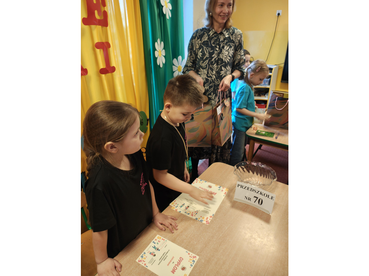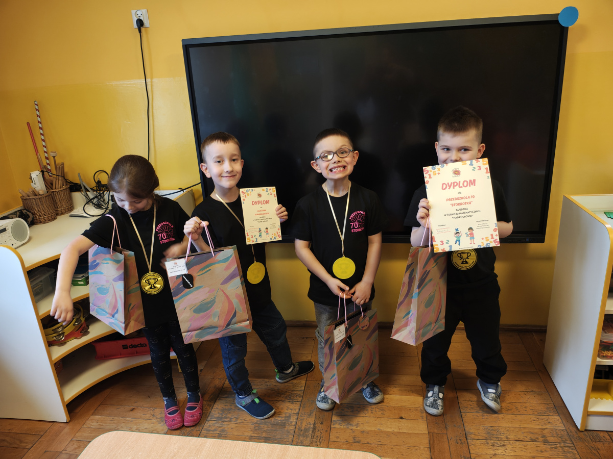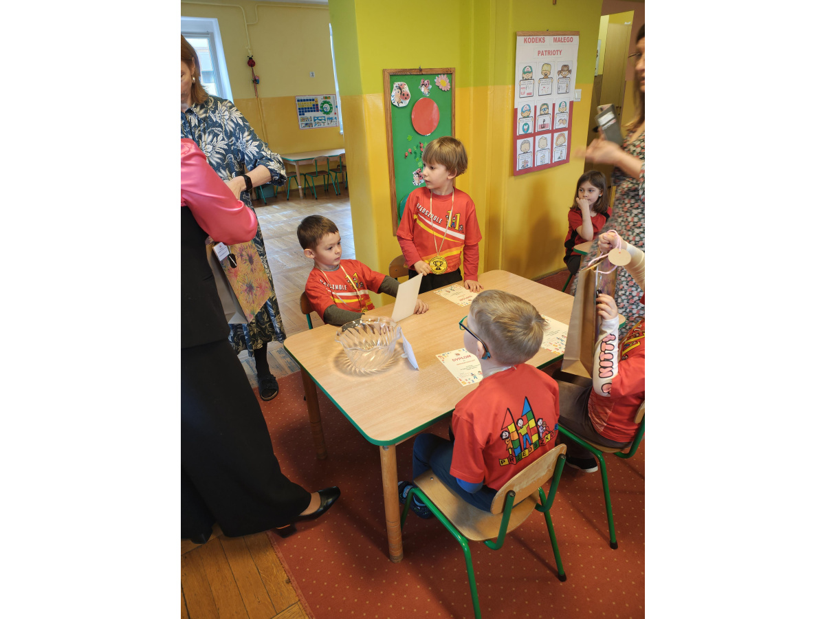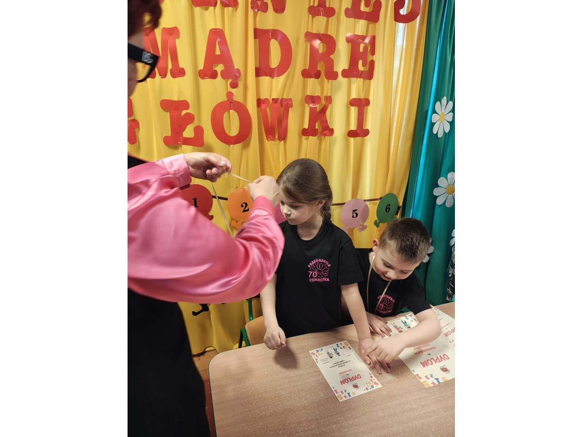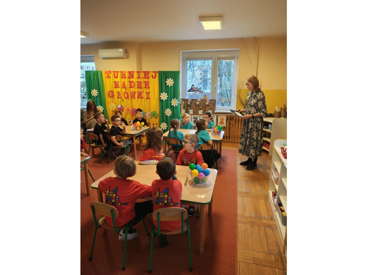 Dnia 16 marca odbyła się XV Edycja Międzyprzedszkolnego Turnieju Matematycznego ,,Mądre Główki''. Gościliśmy drużyny z przedszkoli nr 11, 19 oraz 24. Nasze przedszkole reprezentowała grupa ,,Biedronek''. Dzieci rozwiązywały zadania z zakresu kodowania, dodawania i odejmowania, orientacji na kartce papieru, następstwa czasu. Wszyscy znakomicie poradzili sobie z wyzwaniami matematycznymi. Uczestnicy otrzymali dyplomy, medale i nagrody indywidualne oraz dyplomy dla swojego przedszkola. Miłym akcentem na zakończenie turnieju był słodki poczęstunek.