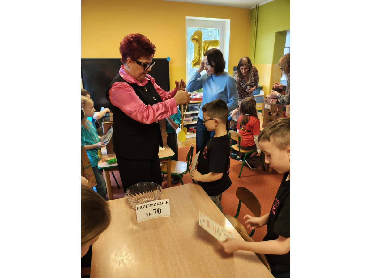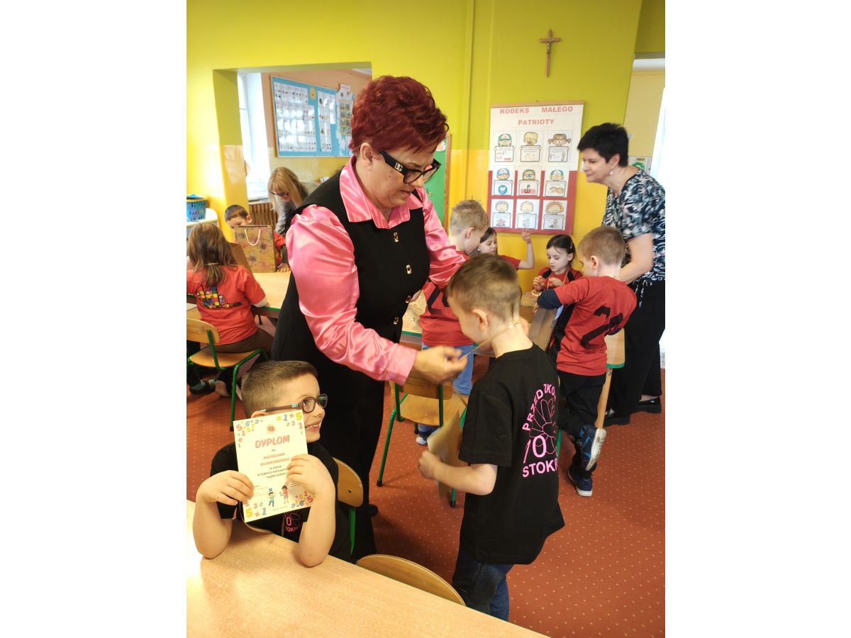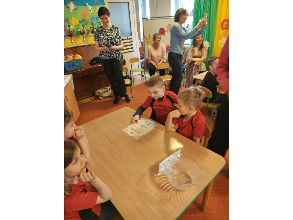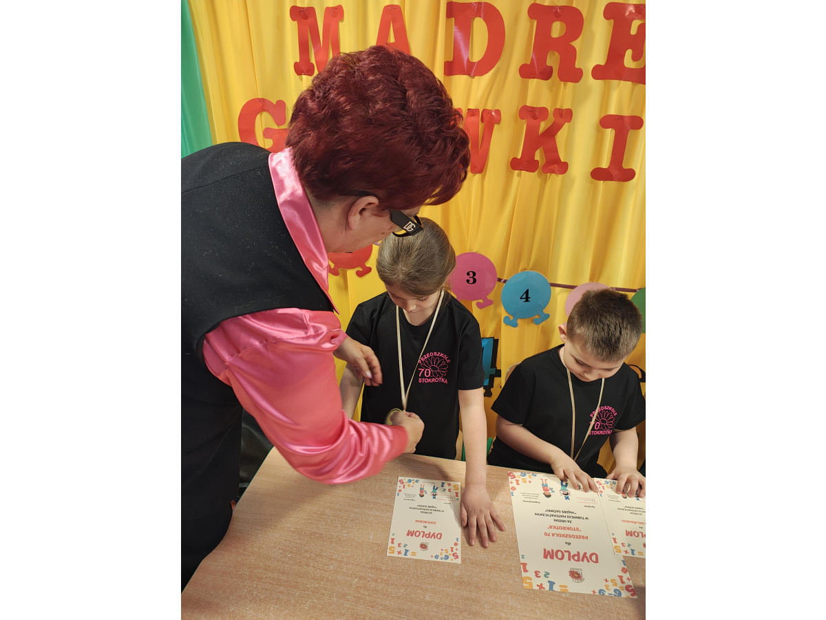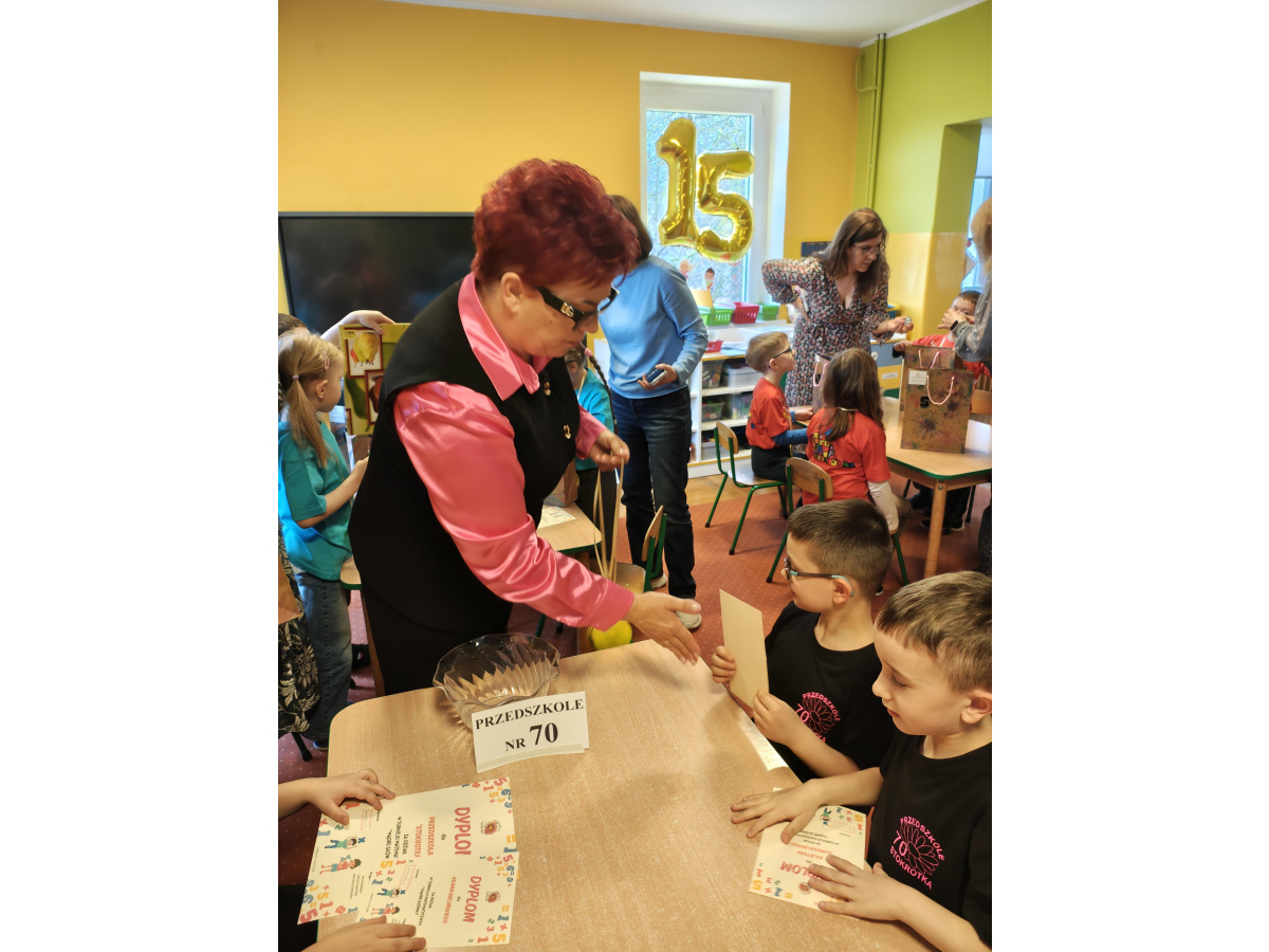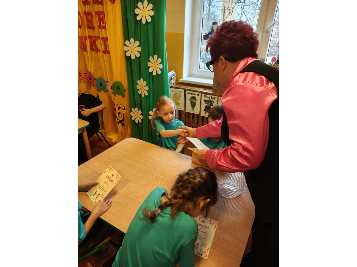 Dnia 16 marca odbyła się XV Edycja Międzyprzedszkolnego Turnieju Matematycznego ,,Mądre Główki''. Gościliśmy drużyny z przedszkoli nr 11, 19 oraz 24. Nasze przedszkole reprezentowała grupa ,,Biedronek''. Dzieci rozwiązywały zadania z zakresu kodowania, dodawania i odejmowania, orientacji na kartce papieru, następstwa czasu. Wszyscy znakomicie poradzili sobie z wyzwaniami matematycznymi. Uczestnicy otrzymali dyplomy, medale i nagrody indywidualne oraz dyplomy dla swojego przedszkola. Miłym akcentem na zakończenie turnieju był słodki poczęstunek.