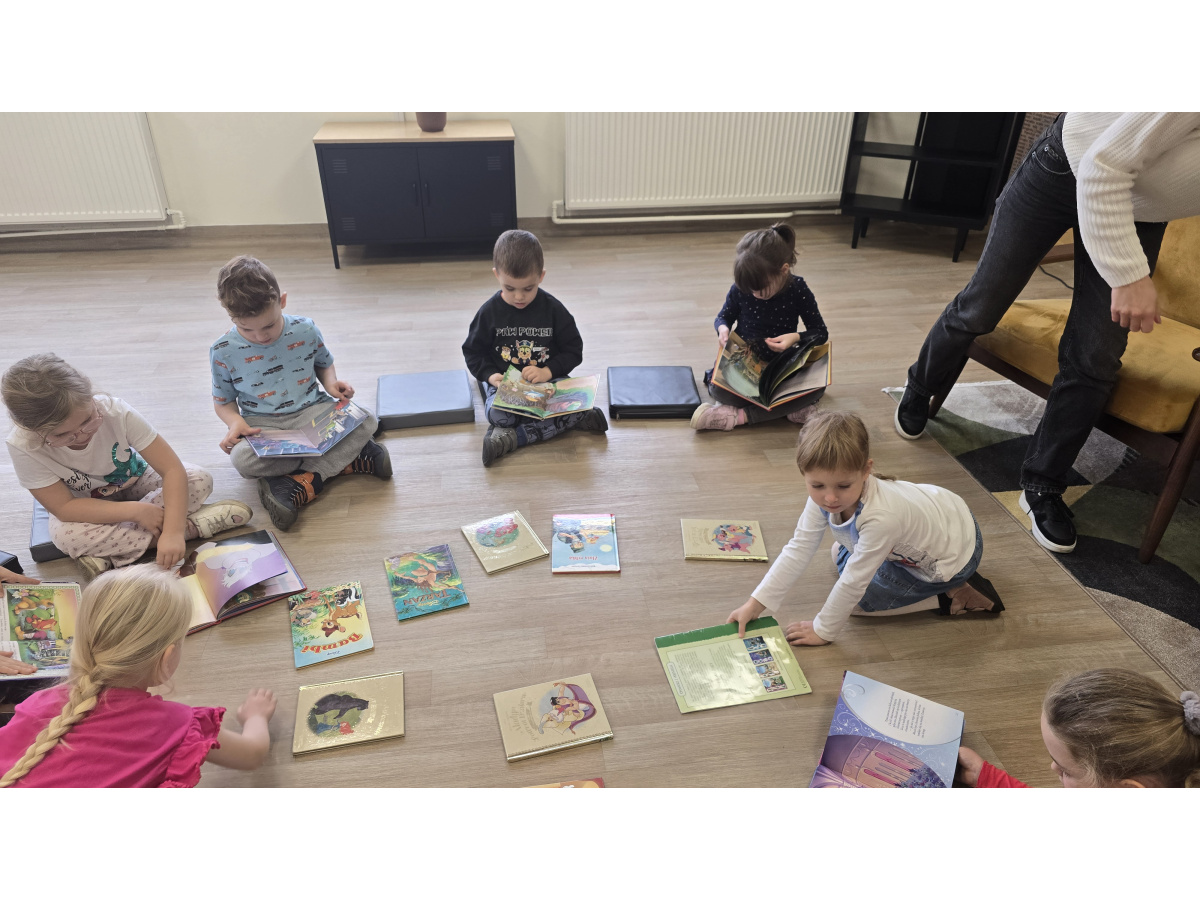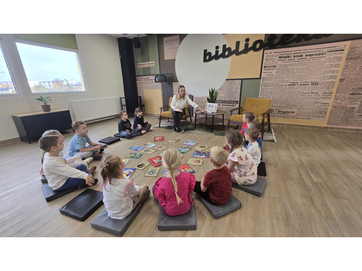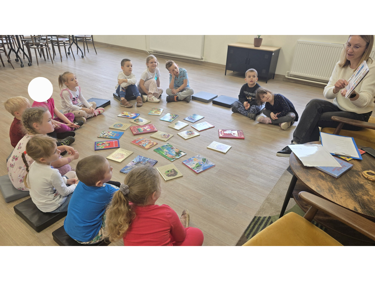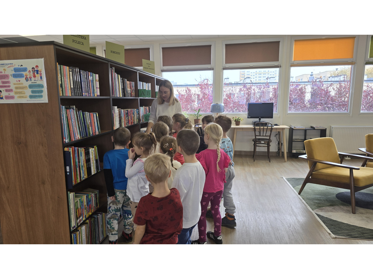 Grupa Żabek wybrała się z wizytą do Biblioteki. Dzieci z dużym zainteresowaniem poznały to wyjątkowe miejsce- dowiedziały się, jak działa biblioteka, w jaki sposób można wypożyczyć książki oraz jak należy o nie dbać. Podczas zajęć dydaktycznych dzieci opowiadały o swoich ulubionych książkach i bohaterach z bajek. Następnie z zaciekawieniem wysłuchały opowiadania o wilku, który nie lubił czytać książek, odkrywając, że czytanie to wspaniała przygoda. Na zakończenie spotkania każdy przedszkolak wykonał kolorową zakładkę do książki z motywem Czerwonego Kapturka.