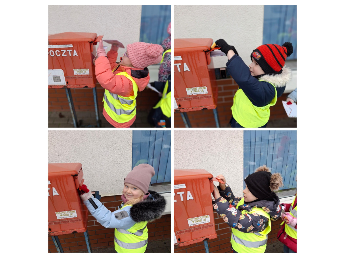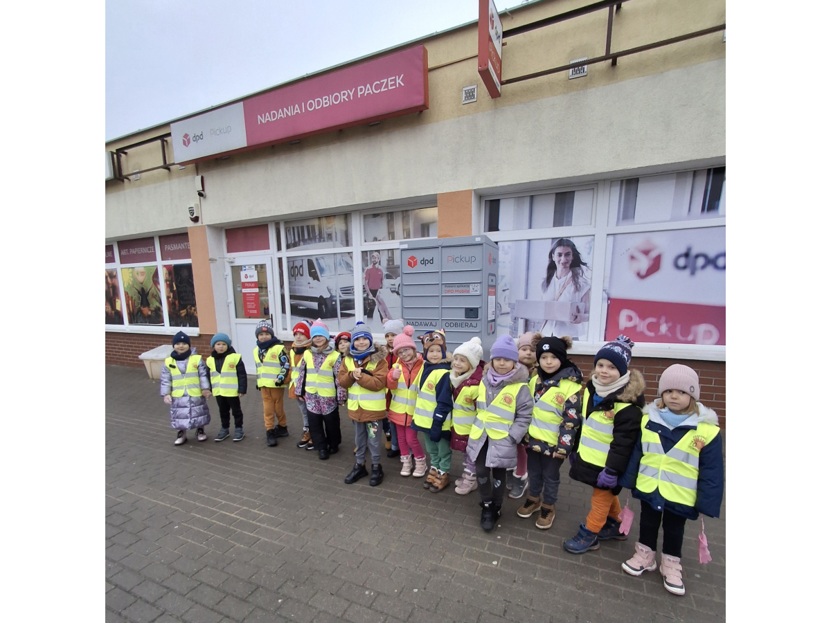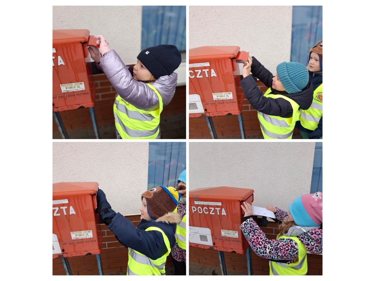 Dzieci z grupy Zajączki wybrały się na pocztę, aby wysłać swoje listy do Mikołaja. Obserwowały pracę pocztowca oraz dowiedziały się, jak wygląda droga listu od nadawcy do adresata. Każde dziecko samodzielnie wrzuciło do skrzynki wcześniej napisany list. Przedszkolaki poznały także różne formy wysyłania życzeń, paczek i listów, a na koniec z zaciekawieniem obserwowały nadanie przesyłki w paczkomacie. To była pełna wrażeń i nowych doświadczeń wycieczka.