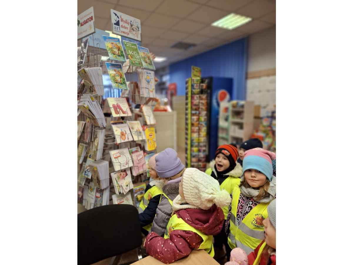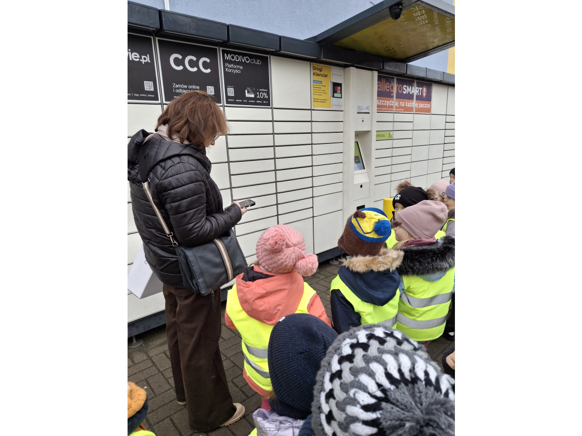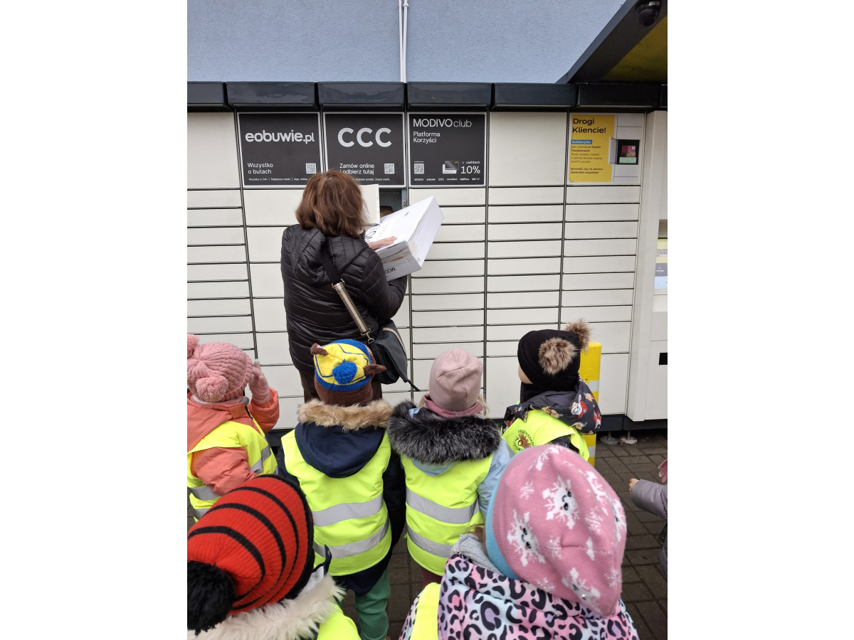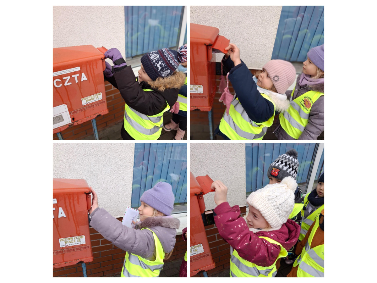 Dzieci z grupy Zajączki wybrały się na pocztę, aby wysłać swoje listy do Mikołaja. Obserwowały pracę pocztowca oraz dowiedziały się, jak wygląda droga listu od nadawcy do adresata. Każde dziecko samodzielnie wrzuciło do skrzynki wcześniej napisany list. Przedszkolaki poznały także różne formy wysyłania życzeń, paczek i listów, a na koniec z zaciekawieniem obserwowały nadanie przesyłki w paczkomacie. To była pełna wrażeń i nowych doświadczeń wycieczka.